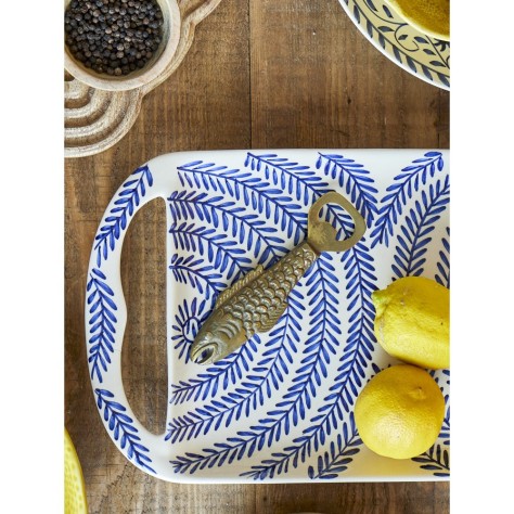 Décapsuleur décoratif et fonctionnel en forme de poisson. Réalisé avec une finition dorée couleur laiton, cet ouvre-bouteille apporte une touche charmante à votre cuisine ou espace bar.