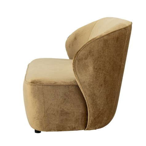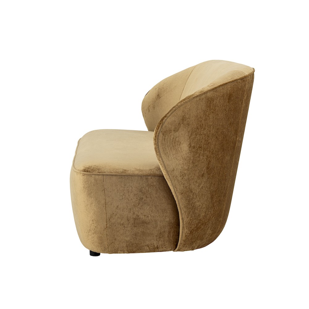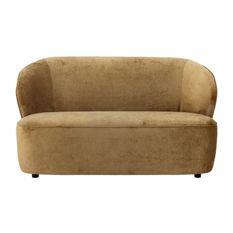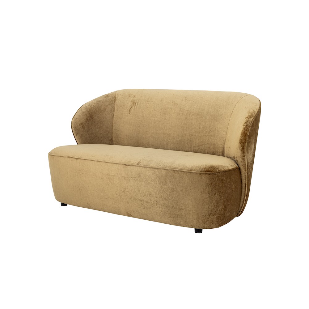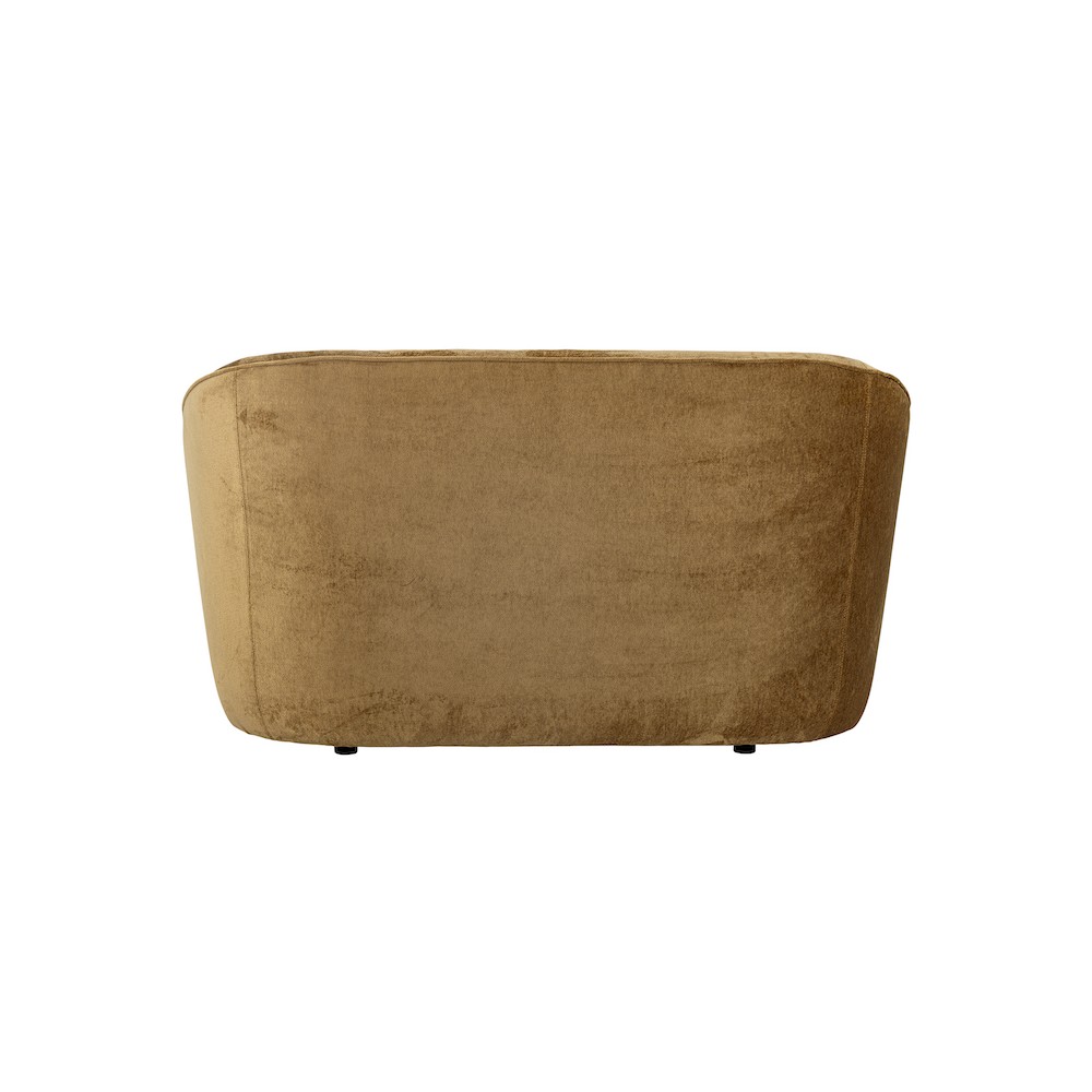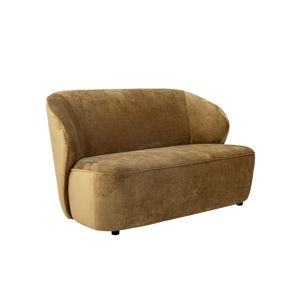 Canapé compact aux formes rondes revêtu d'un velours ras de couleur marron-doré. Pour donner des airs cosy-cocon à votre salon, placez des coussins aux teintes sourdes, aux matières naturelles telles que le lin ou le coton et jouez quelques motifs ethniques.