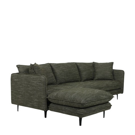 Canapé 2 en 1 : Canapé d'angle composé de 2 structures. Un élément canapé 255 x 93 x H81cm et un élément 81 x 72 x H45. Ce dernier est amovible et peut donc être utilisé à part pour en faire une assise supplémentaire lorsque vous recevez. Confort mousse, recouvert d'un tissu polyester chiné. Ligne contemporaine et cosy grâce à son dossier multi-coussins.