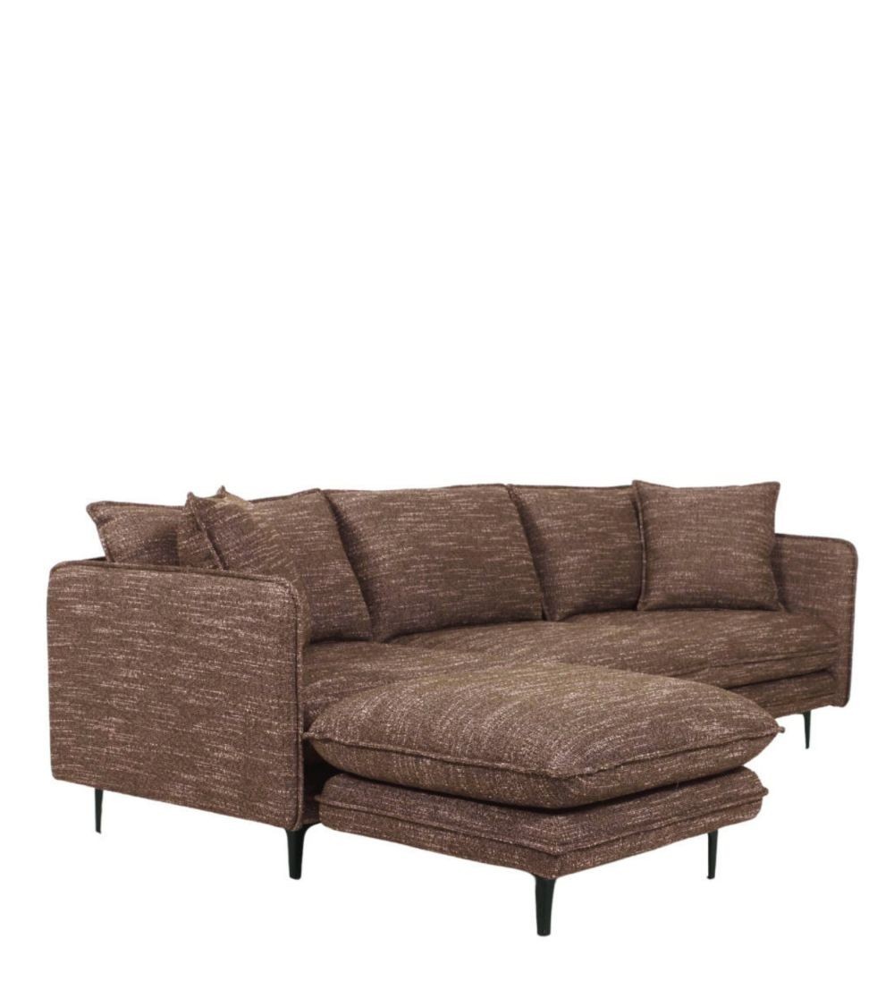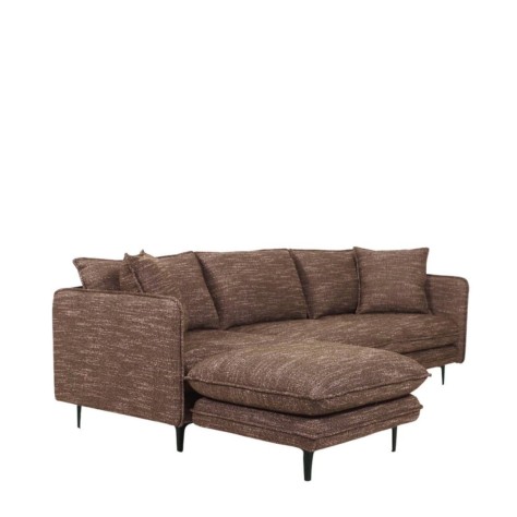 Canapé 2 en 1 : Canapé d'angle composé de 2 structures. Un élément canapé 255 x 93 x H81cm et un élément 81 x 72 x H45. Ce dernier est amovible et peut donc être utilisé à part pour en faire une assise supplémentaire lorsque vous recevez. Pour son bon maintien, une pince crocodile relie les deux éléments. Confort mousse, recouvert d'un tissu polyester chiné. Ligne contemporaine et cosy grâce à son dossier multi-coussins.