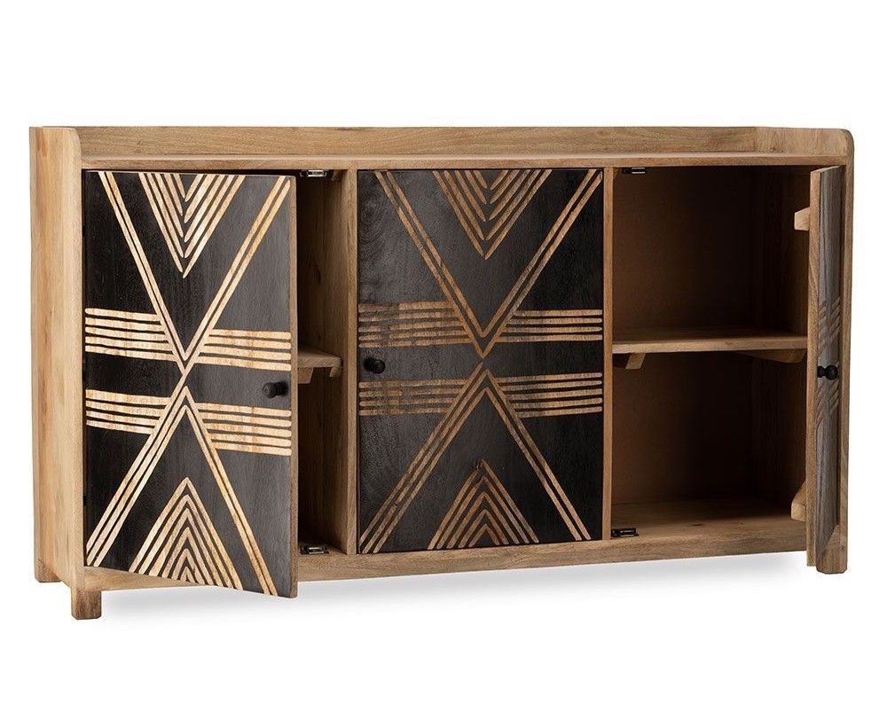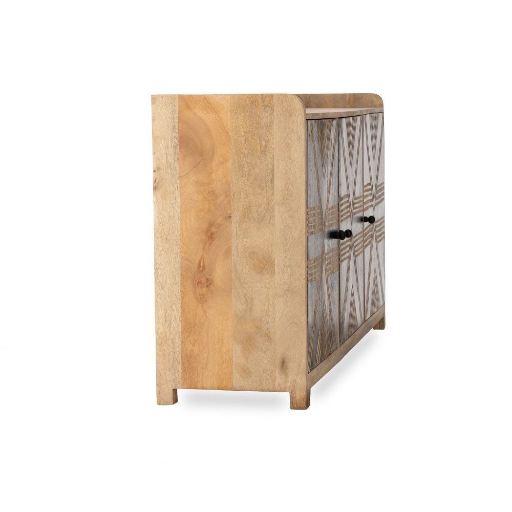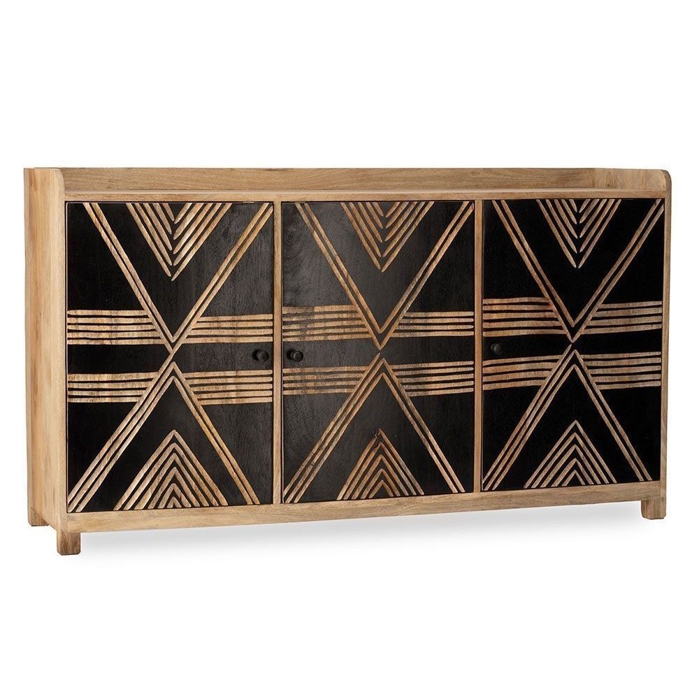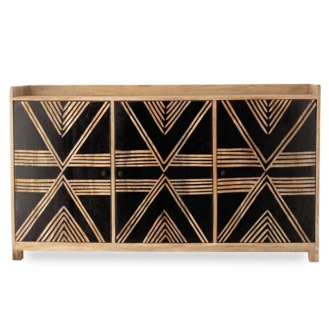 Buffet en manguier sculptée de façon artisanale, chaque pièce est unique. Existe en version armoire.