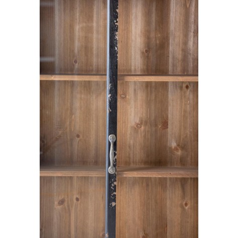 Matériaux : Structure en pin, dos MDF, poignées en fer, verre