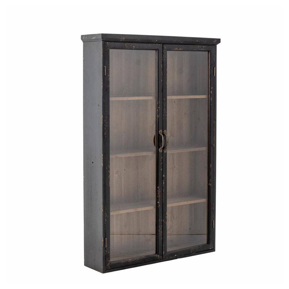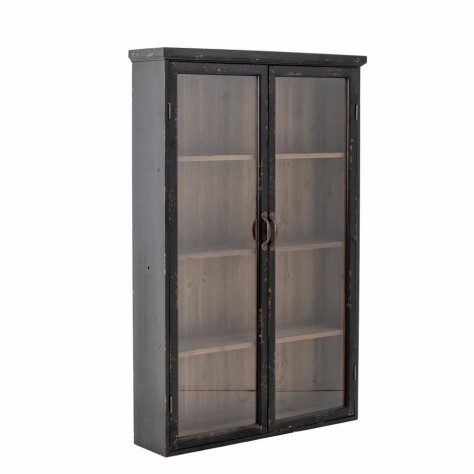 Armoire noire, 2 portes vitrées, fermeture magnétique. Effet vieilli