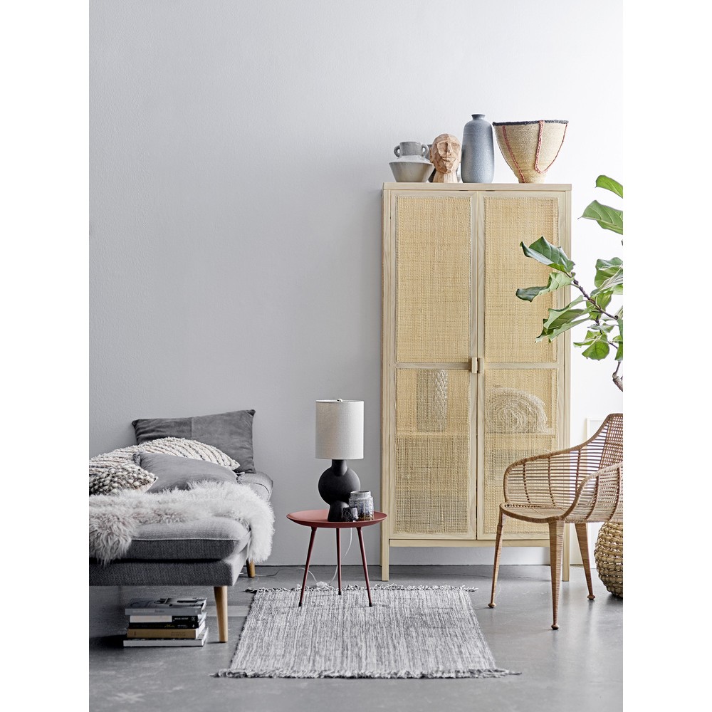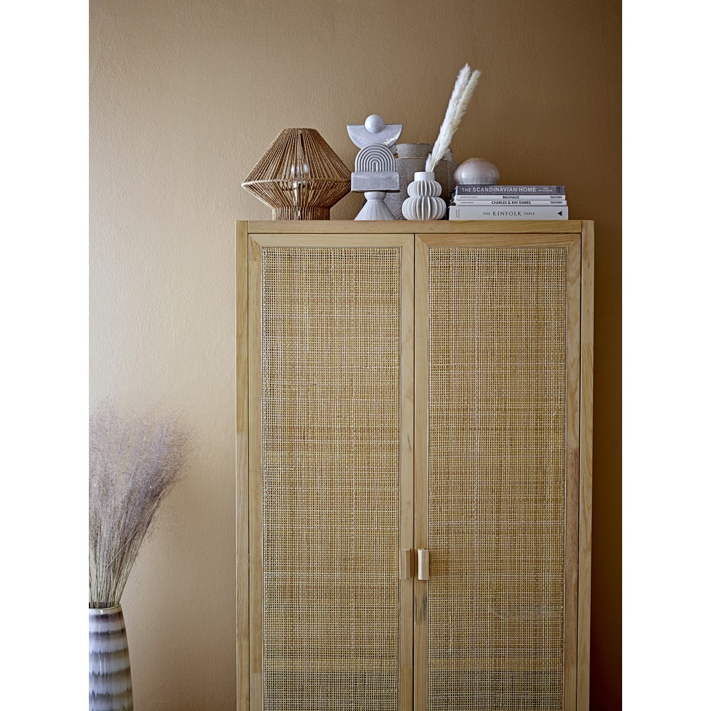 Créez une ambiance agréable et nordique grâce à cette armoire en pin Mariana de Bloomingville. Elle a un look très nordique et aéré avec ses portes en cannage semi-transparent. Essuyez-la à l’aide d’un chiffon humide.