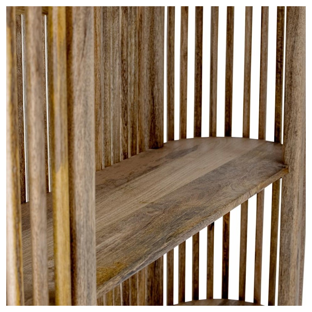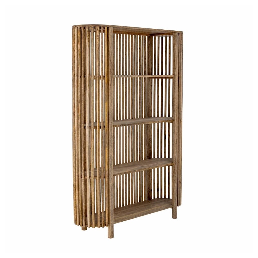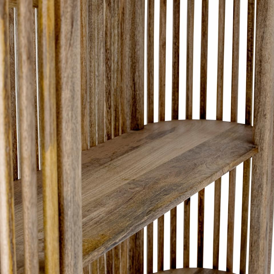 En bois de manguier brillant foncé et dotée de 4 étagères. La bibliothèque est livrée assemblée