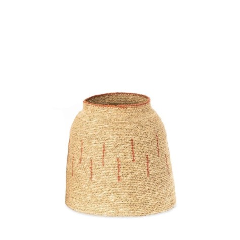 L'authenticité des fibres naturelles et le charme du fait-main. Le pot Mamba est une pièce de vannerie qui respire le savoir-faire artisanal et la douceur de vivre. Entièrement tressé à la main en herbier marin, il arbore une teinte naturelle et lumineuse qui apporte instantanément de la chaleur à une pièce. Sa jolie forme de cloche, généreuse à la base et resserrée à l'ouverture, est rythmée par de discrètes coutures verticales et un liseré supérieur de couleur terracotta. Cette touche de couleur chaude, inspirée de la terre, sublime l'ensemble avec subtilité.