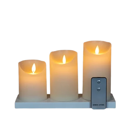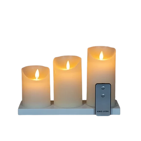 Set de 3 bougies rechargeables sur station, flammes en mouvement