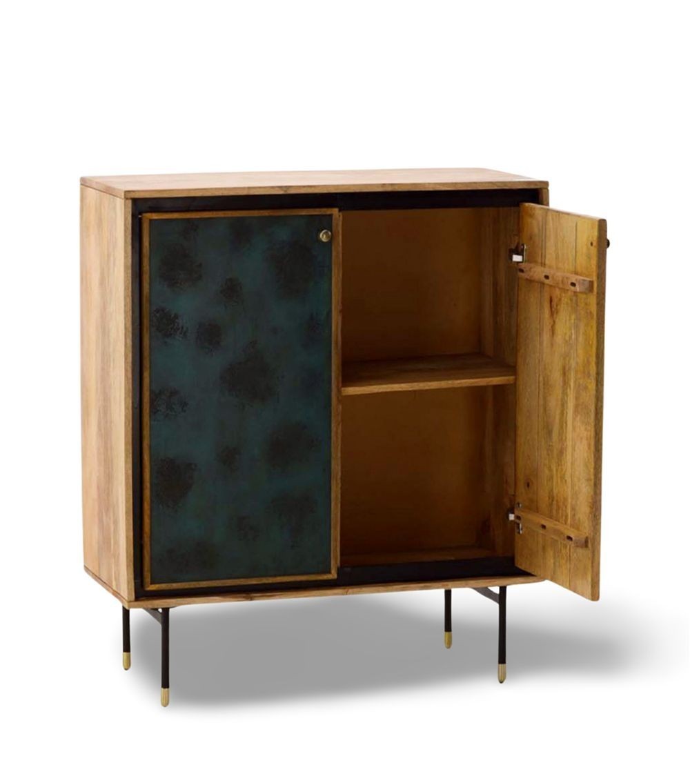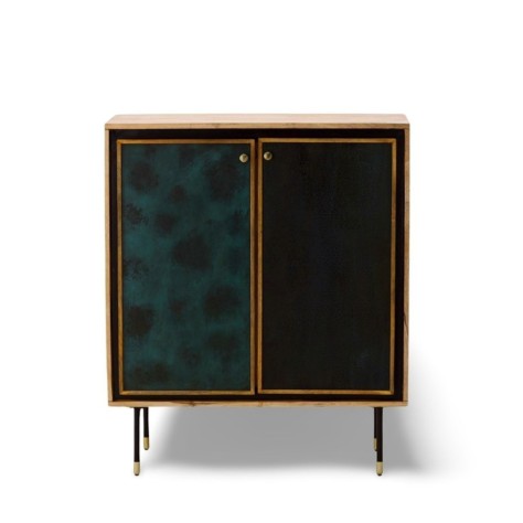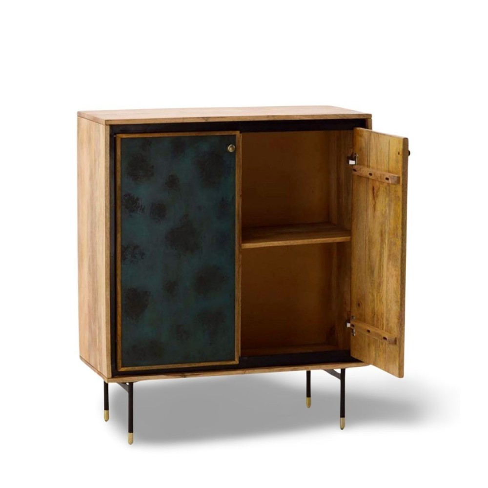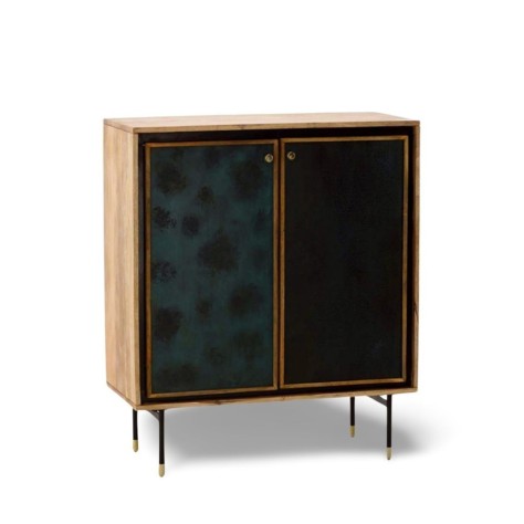 Meuble 2 portes avec deux étagères par porte. Une porte à motif et une porte unie.