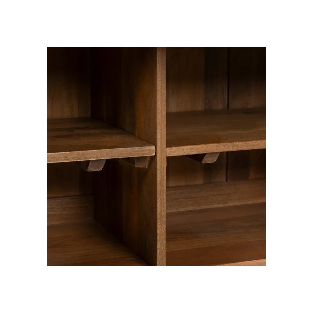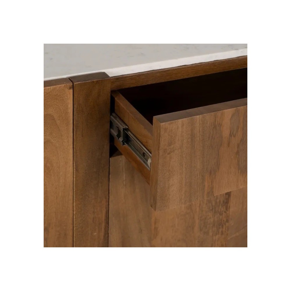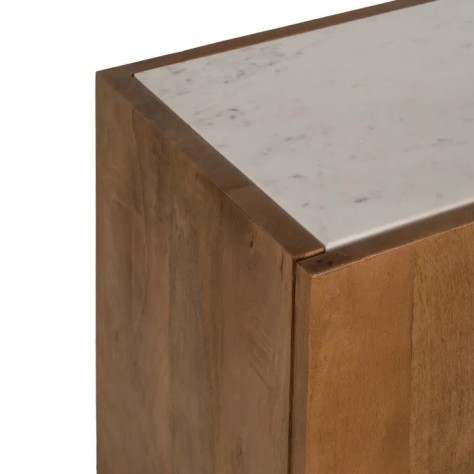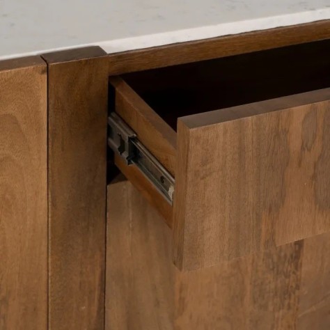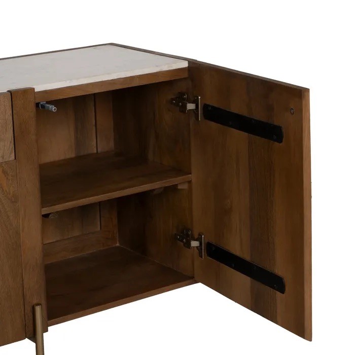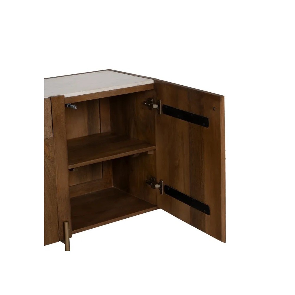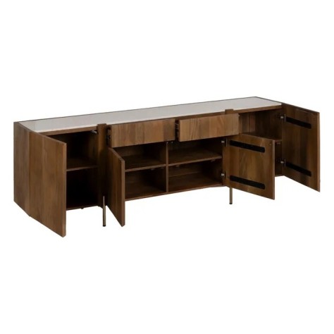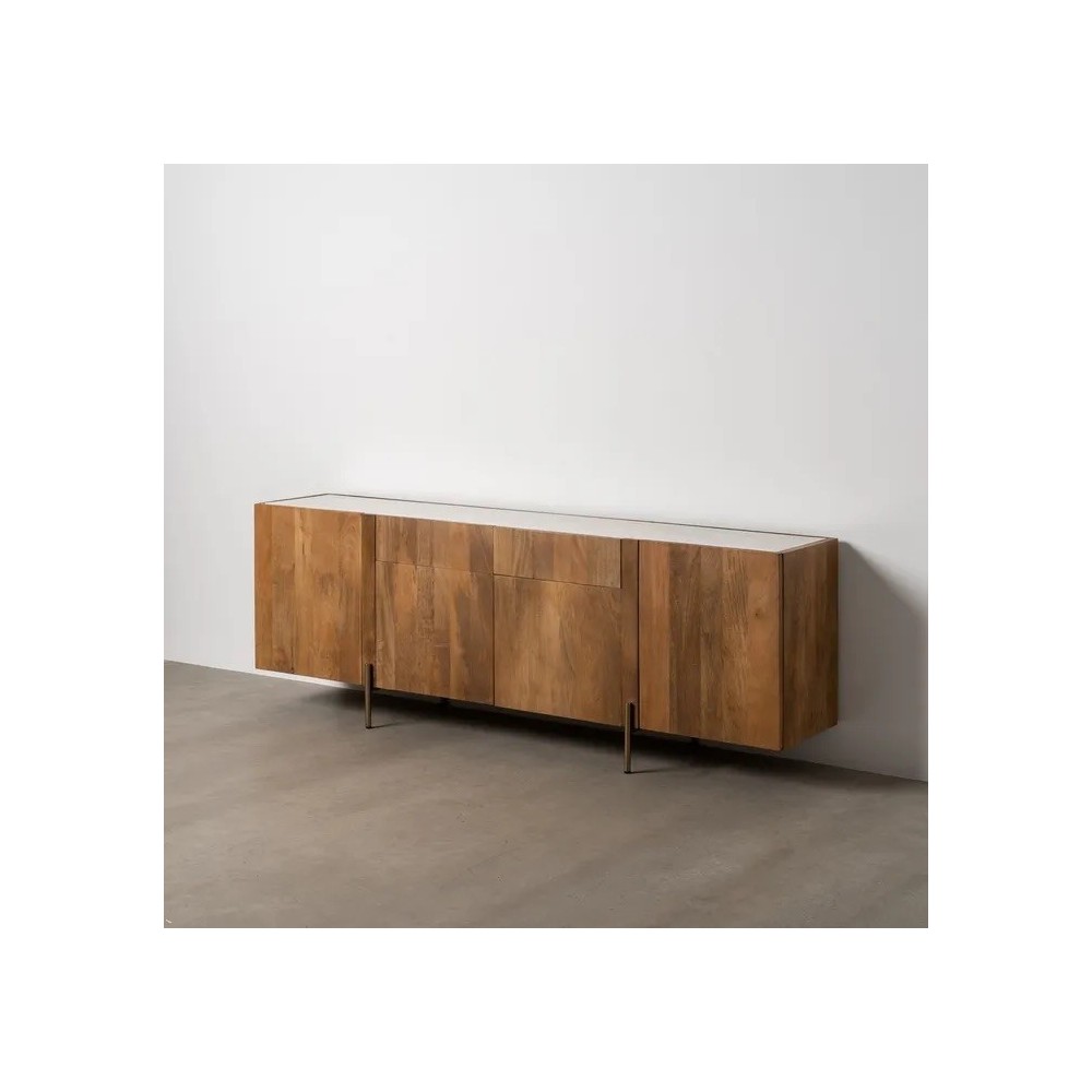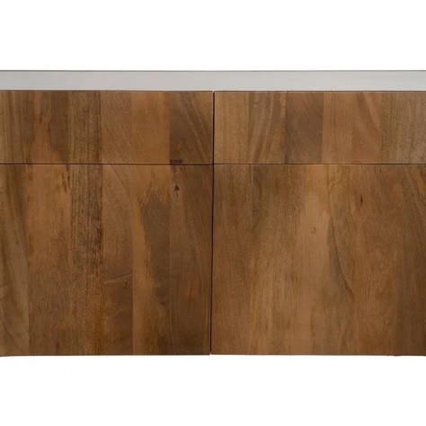 Buffet 4 portes et 2 tiroirs en bois d'acacia avec plateau en marbre. Ouverture sysème push.
