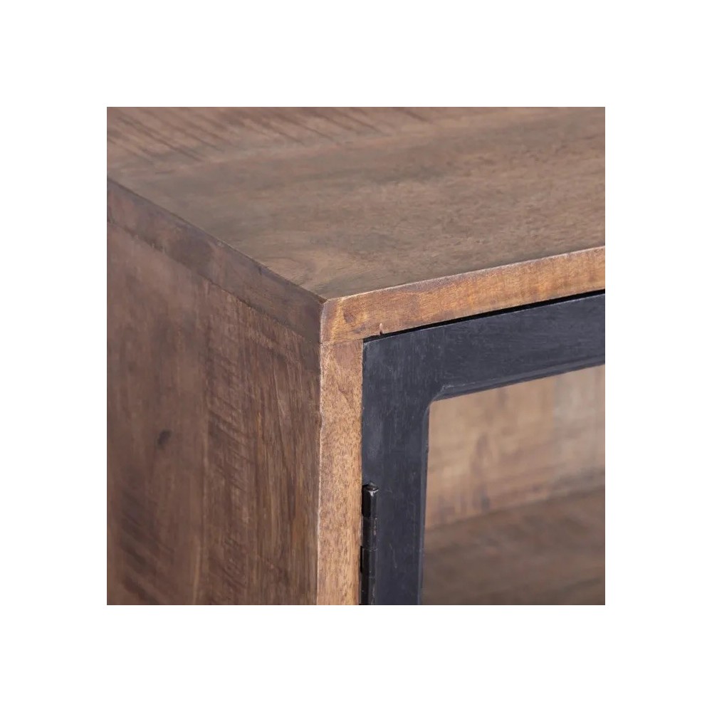 Matériau : Strucure en bois de manguier, portes en verre et bois de manguier, pied en fer
