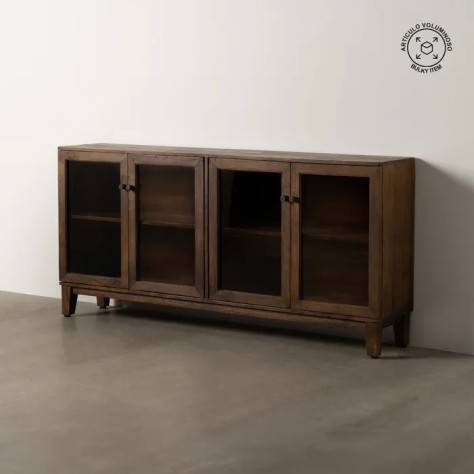 Ce buffet-vitrine en bois massif foncé incarne un charme classique et intemporel. Sa structure robuste et ses lignes droites lui confèrent une allure rassurante et élégante, typique des meubles de famille qui traversent les générations. Doté de quatre grandes portes vitrées, il est conçu pour exposer avec soin vaisselle, livres ou objets de collection. Son piètement droit et intégré assure une parfaite stabilité tout en affirmant son caractère. Les poignées discrètes ajoutent une touche finale artisanale à ce meuble de caractère, qui allie chaleur, tradition et fonctionnalité.