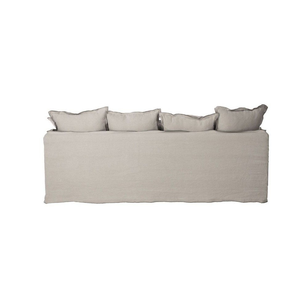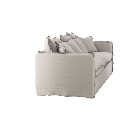 Matières : Tissu en lin, caisson pin et contre-plaqué, rembourrage plumes et mousse polyurethane, pieds en plastique à visser