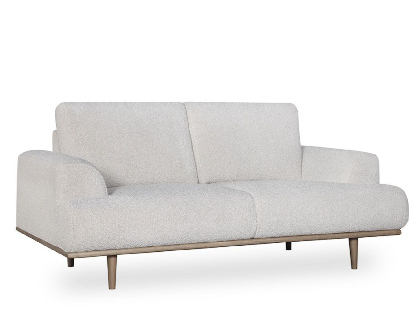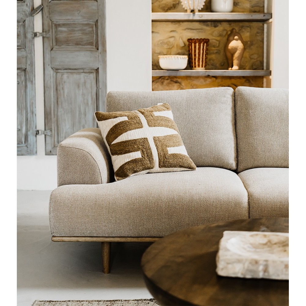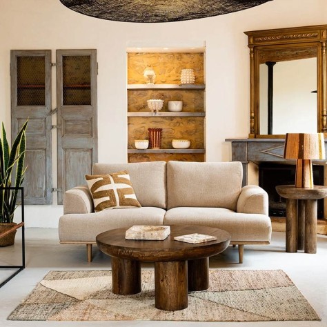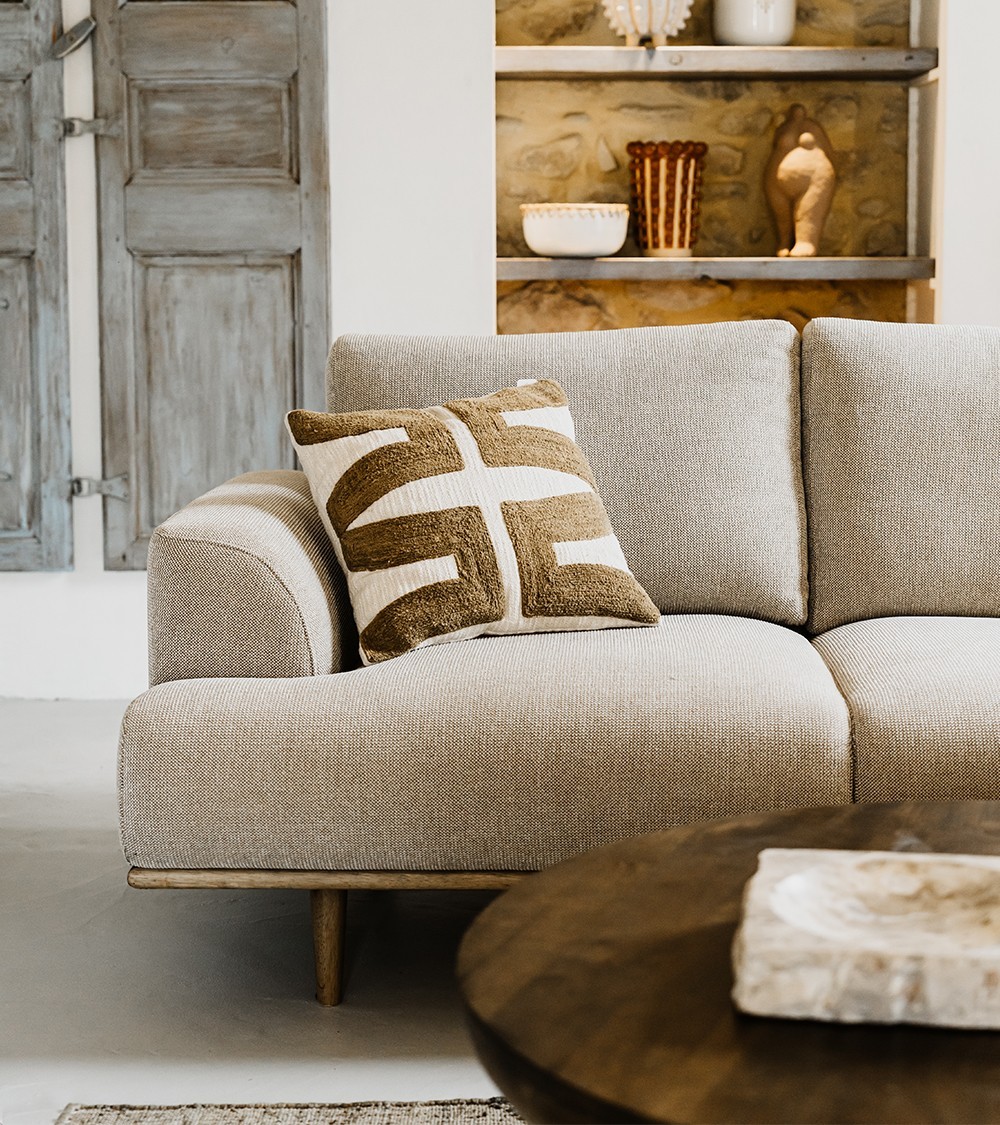 Un canapé design beige aux lignes pures et élégantes pour un look cosy-contemporain