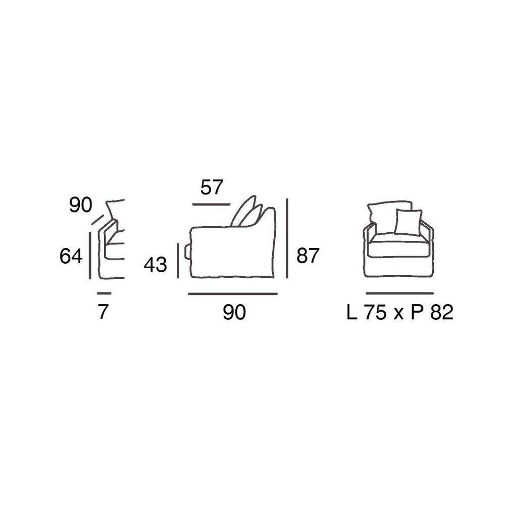 Profondeur totale / Profondeur d'assise : 82 cm / 49 cm