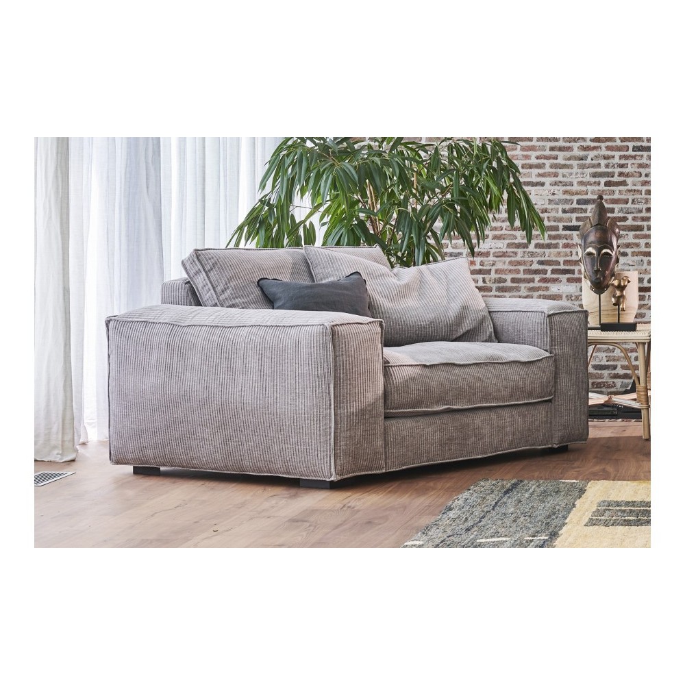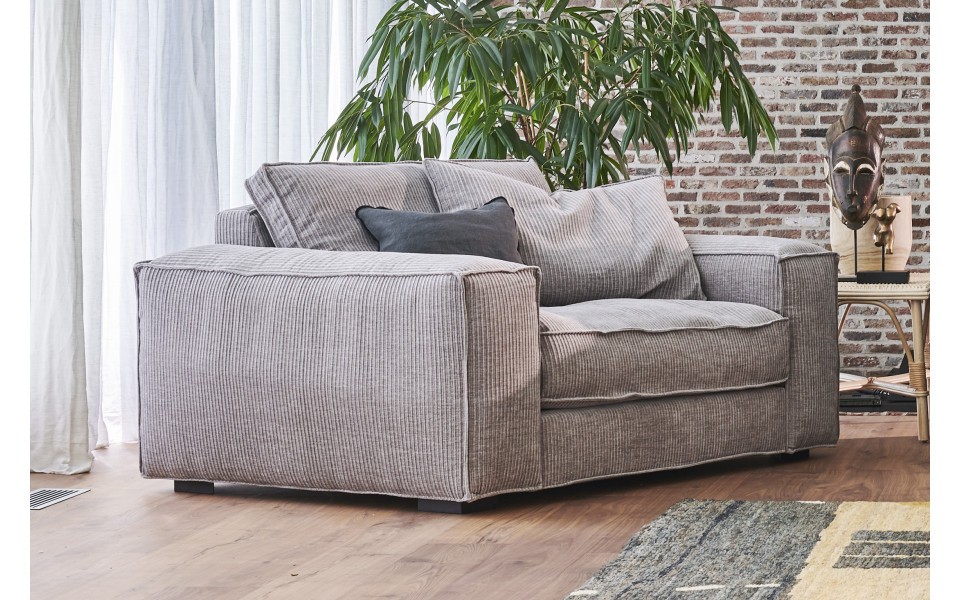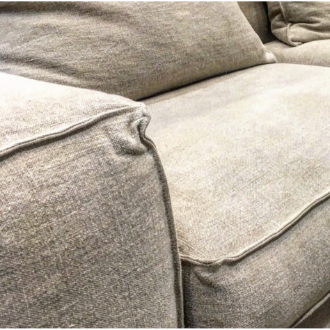 Cette ligne de canapés allie design intemporel et contemporain grâce à ses larges accoudoirs tout en conservant un aspect détente et cosy avec son rembourrage plume et mousse HR qui au-delà du style, en fait un canapé extrêmement confortable.