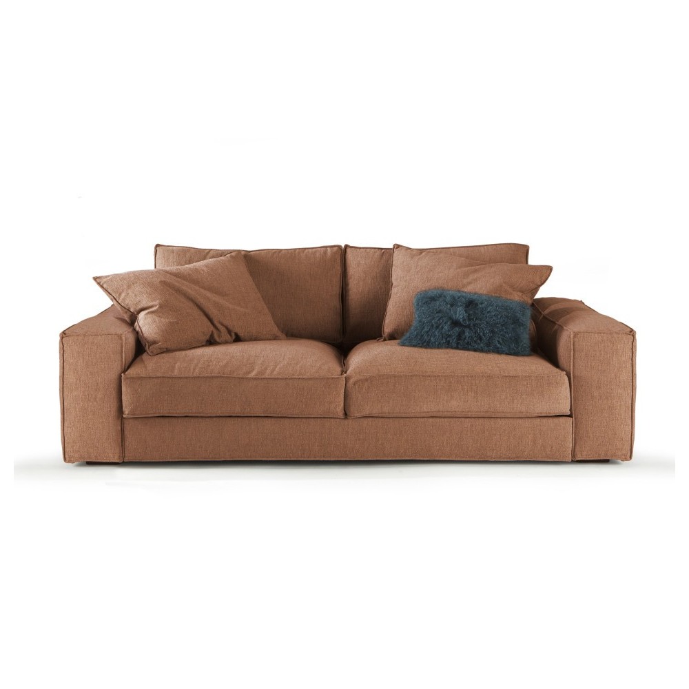 Cette ligne de canapés allie design intemporel et contemporain grâce à ses larges accoudoirs tout en conservant un aspect détente et cosy avec son rembourrage plume et mousse HR qui au-delà du style, en fait un canapé extrêmement confortable.