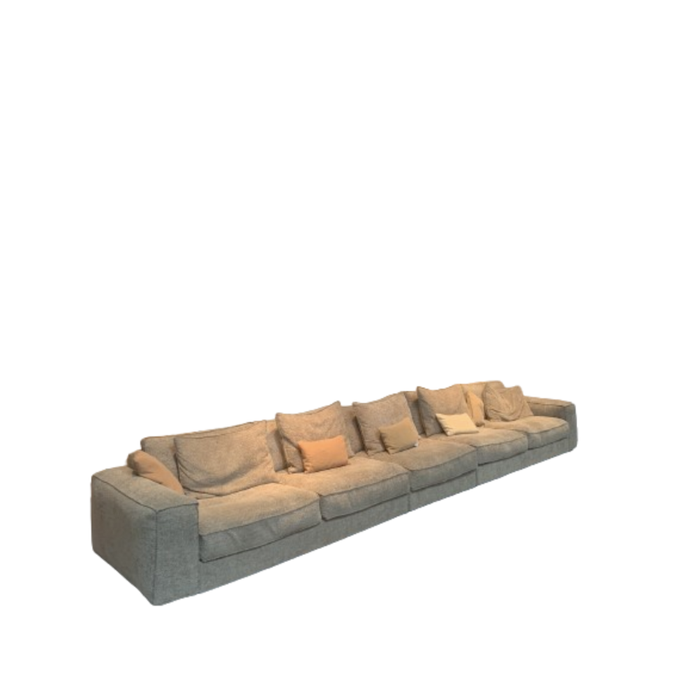 Cette ligne de canapés allie design intemporel et contemporain grâce à ses larges accoudoirs tout en conservant un aspect détente et cosy avec son rembourrage plume et mousse HR qui au-delà du style, en fait un canapé extrêmement confortable.