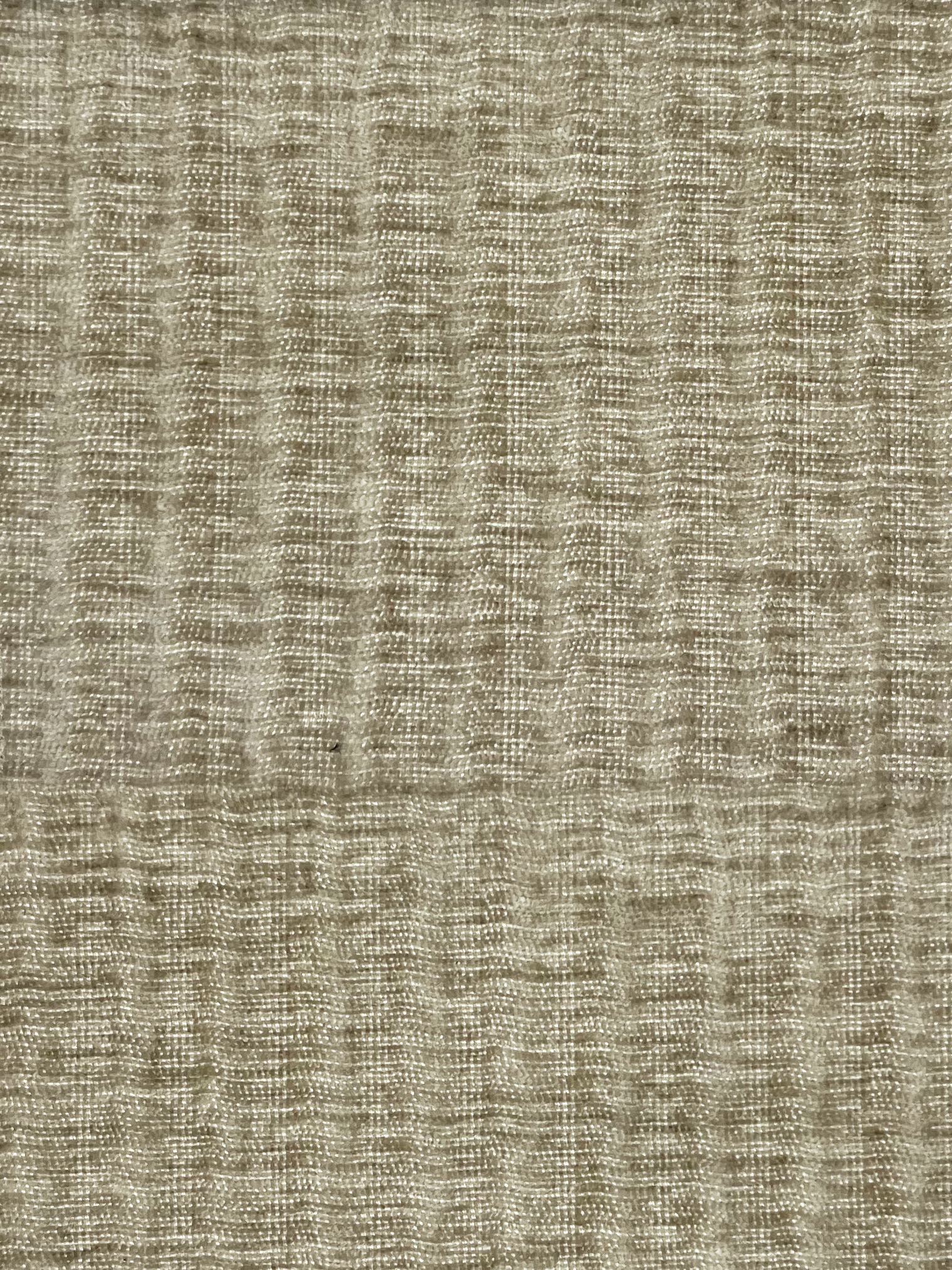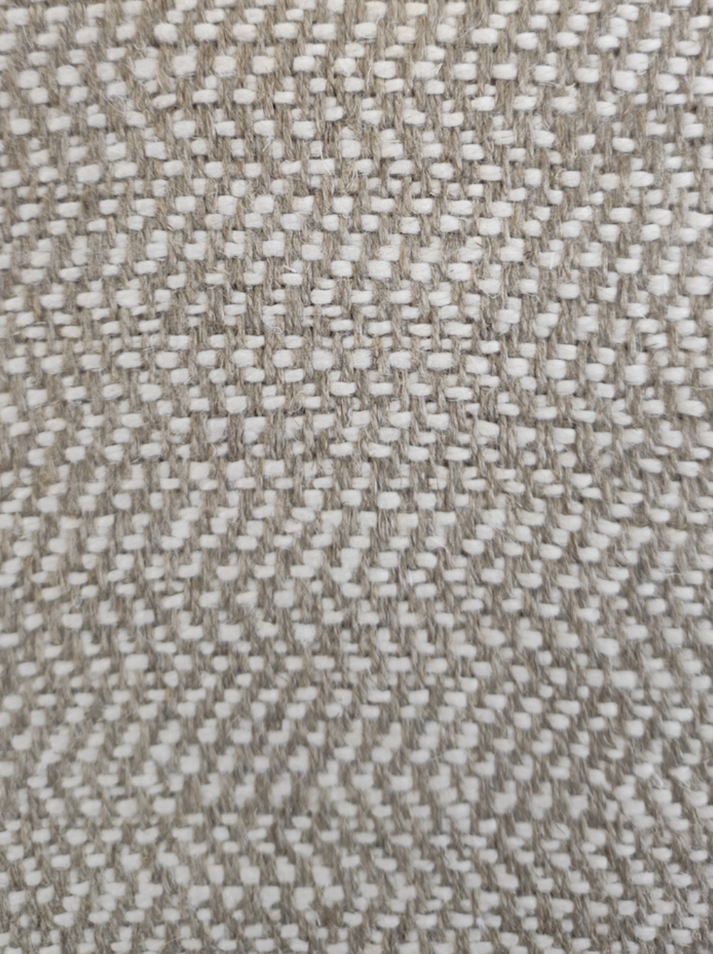 Un tissu au tissage unique composé de fil de chaîne et de trame de couleur blanche et naturelle. Auu final, un magnifique rendu couleur sable.
