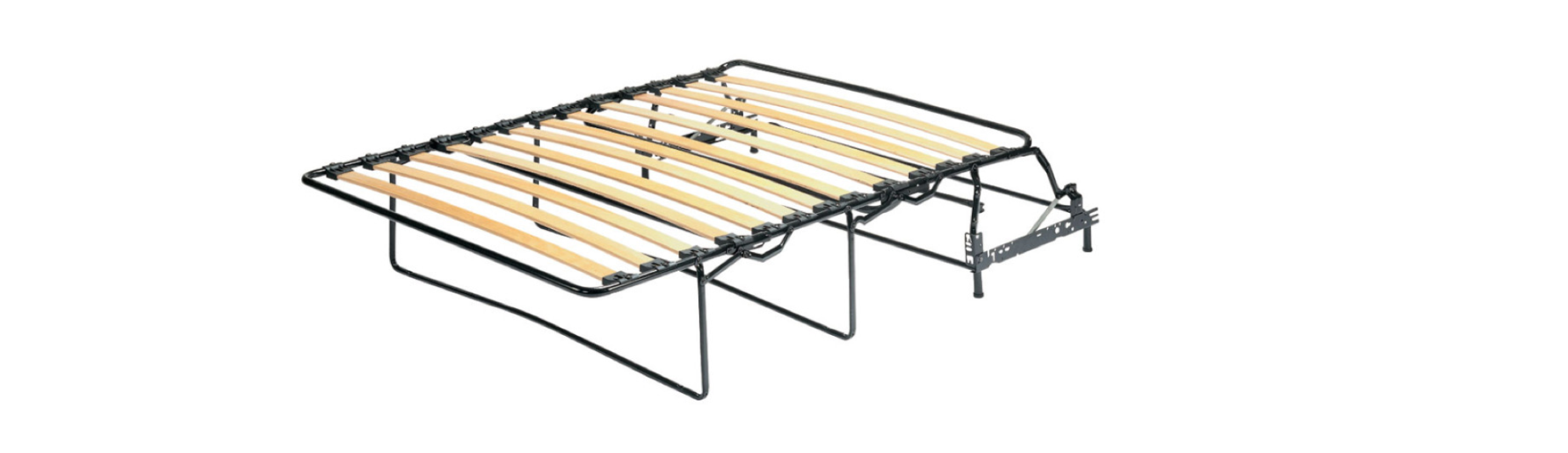 D'abord parce que les coussins d'assises et de dos restent en place à l'ouverture grâce à sa mécanique autoporteuse, ensuite parce que ce modèle propose un sommier grille avec sangles entrecroisées et un matelas HR 35 kg/m3 d'une épaisseur 14 cm.