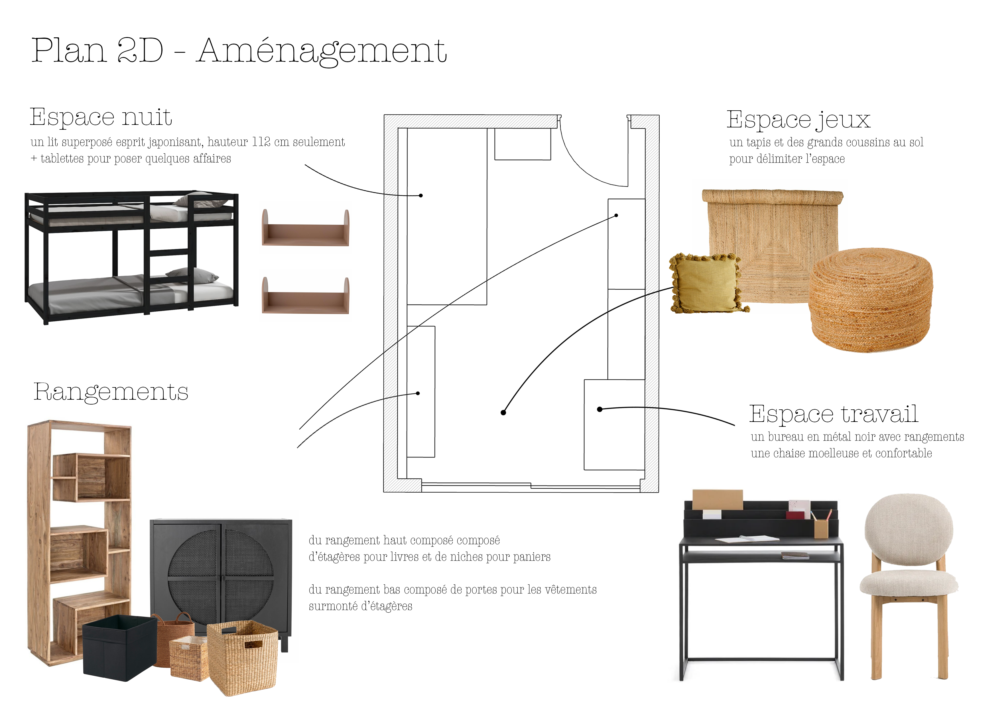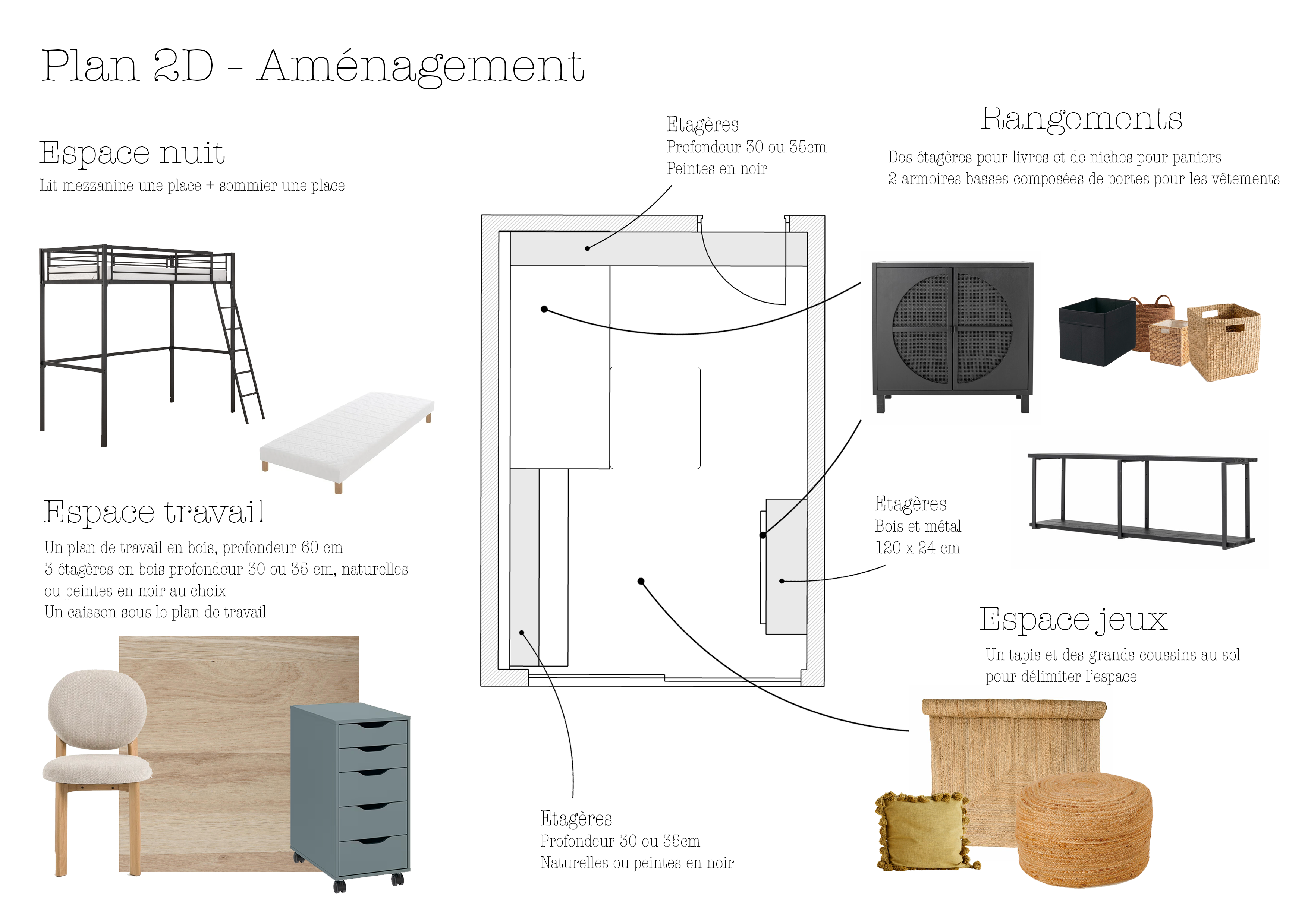 - Vous nous adressez des photos et vidéos de la pièce que vous souhaitez métamorphoser avec ses mesures, nous vous envoyons un questionnaire pour en savoir un peu plus sur vous et votre projet, puis nous échangeons par téléphone pour connaître vos attentes, et nous vous faisons une proposition illustrée de nouvel intérieur, avec shopping list, disposition, gamme couleur pour un éventuel coup de peinture… Au final, c’est bien-sûr vous qui décidez de tout.
