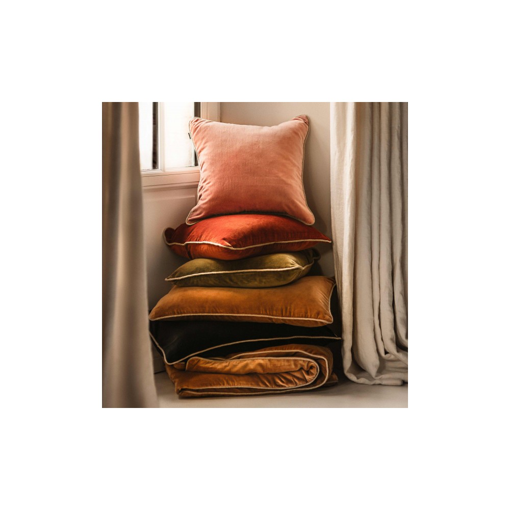 La gamme Delhi de la marque Haomy, incontournable et intemporelle, apporte de la chaleur et et du réconfort à votre salon ou votre chambre, grâce à son doux velours de coton décliné en coloris profonds et vibrants. Le détail bourdon apporte une touche bohème et délicate. Delhi se décline en édredon à placer sur l'assise de votre canapé ou au bout de votre lit deux personnes. N'hésitez pas à les mélanger avec les autres coussins de la collection Maison du coin de la rue.