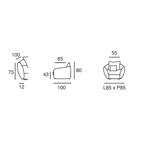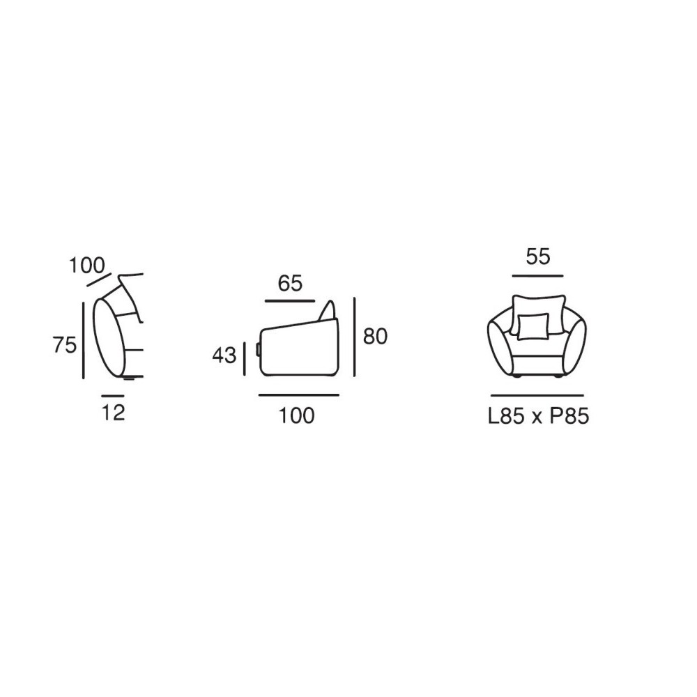 Largeur totale / assise : 85 / 55 cm