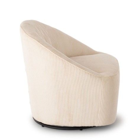 Ce fauteuil en velours côtelé, design et épuré à la fois, est un modèle incontournable. Son look rétro-seventies remis au gout du jour, sa forme ronde et généreuse et son assise en mousse polyuréthane vous assure un vrai moment de confort. Son énorme plus : il pivote ! Ce fauteuil existe en 3 coloris différents.