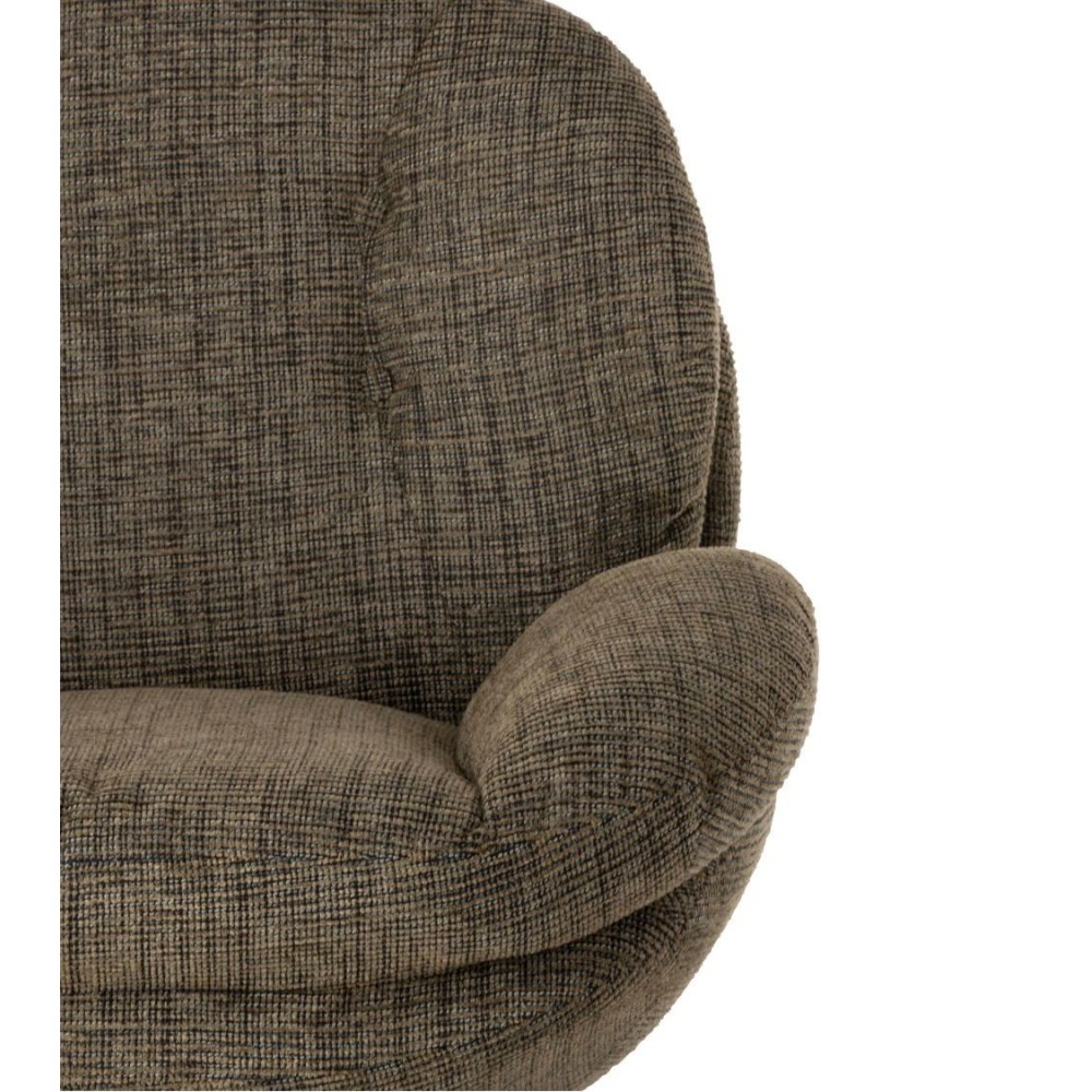 Faites écho au contraste du fauteuil lui-même (tissu doux / pied en métal). Mariez sa texture moelleuse à des éléments plus "durs" et raffinés dans le reste de la pièce. Pensez à une table basse avec un plateau en marbre, des objets décoratifs en laiton ou en verre fumé, et des touches de métal noir sur les luminaires ou les cadres pour rappeler son piètement. Ce mélange crée un équilibre visuel très chic. - L'écho des formes : répétez les courbes