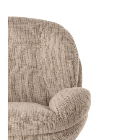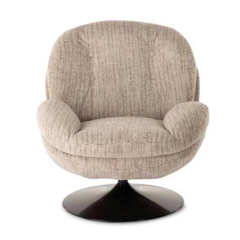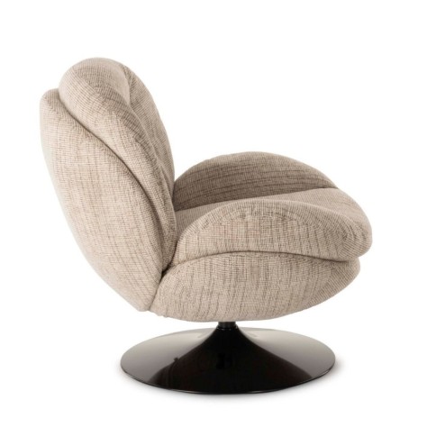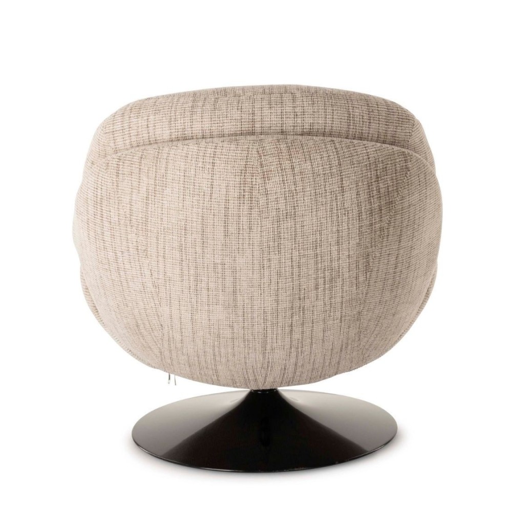 Faites écho au contraste du fauteuil lui-même (tissu doux / pied en métal). Mariez sa texture moelleuse à des éléments plus "durs" et raffinés dans le reste de la pièce. Pensez à une table basse avec un plateau en marbre, des objets décoratifs en laiton ou en verre fumé, et des touches de métal noir sur les luminaires ou les cadres pour rappeler son piètement. Ce mélange crée un équilibre visuel très chic. - L'écho des formes : répétez les courbes