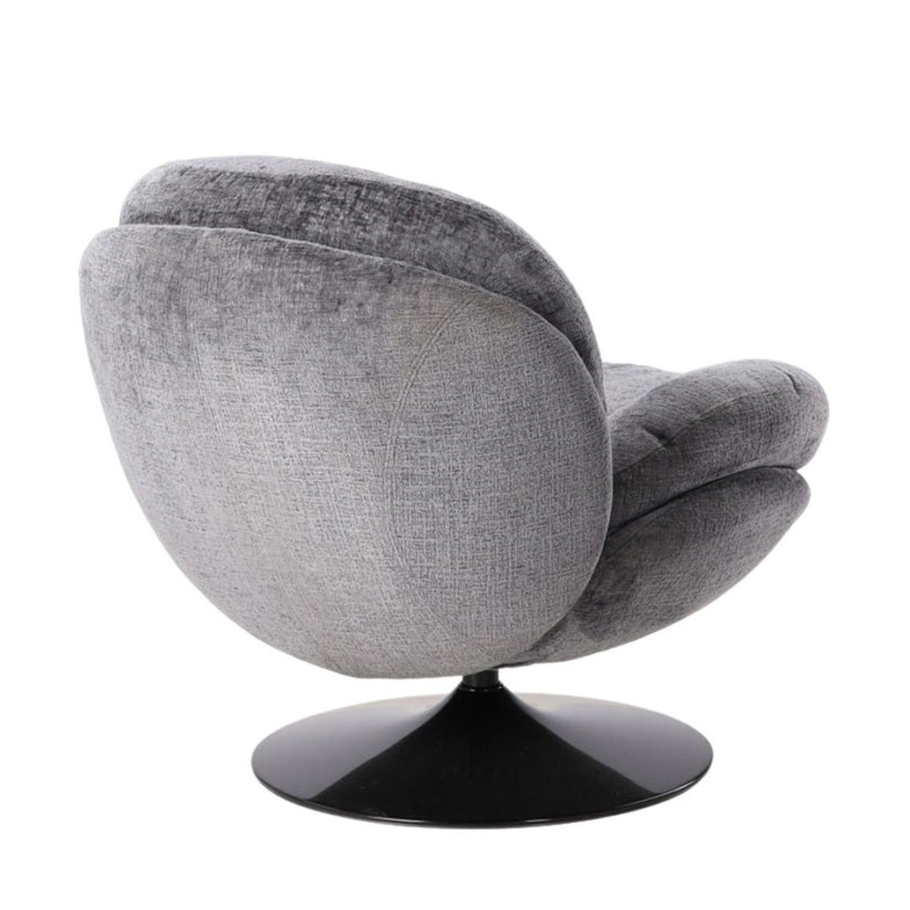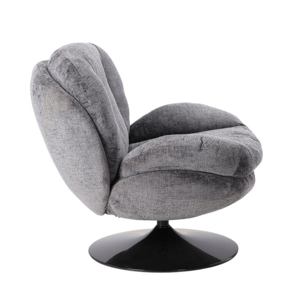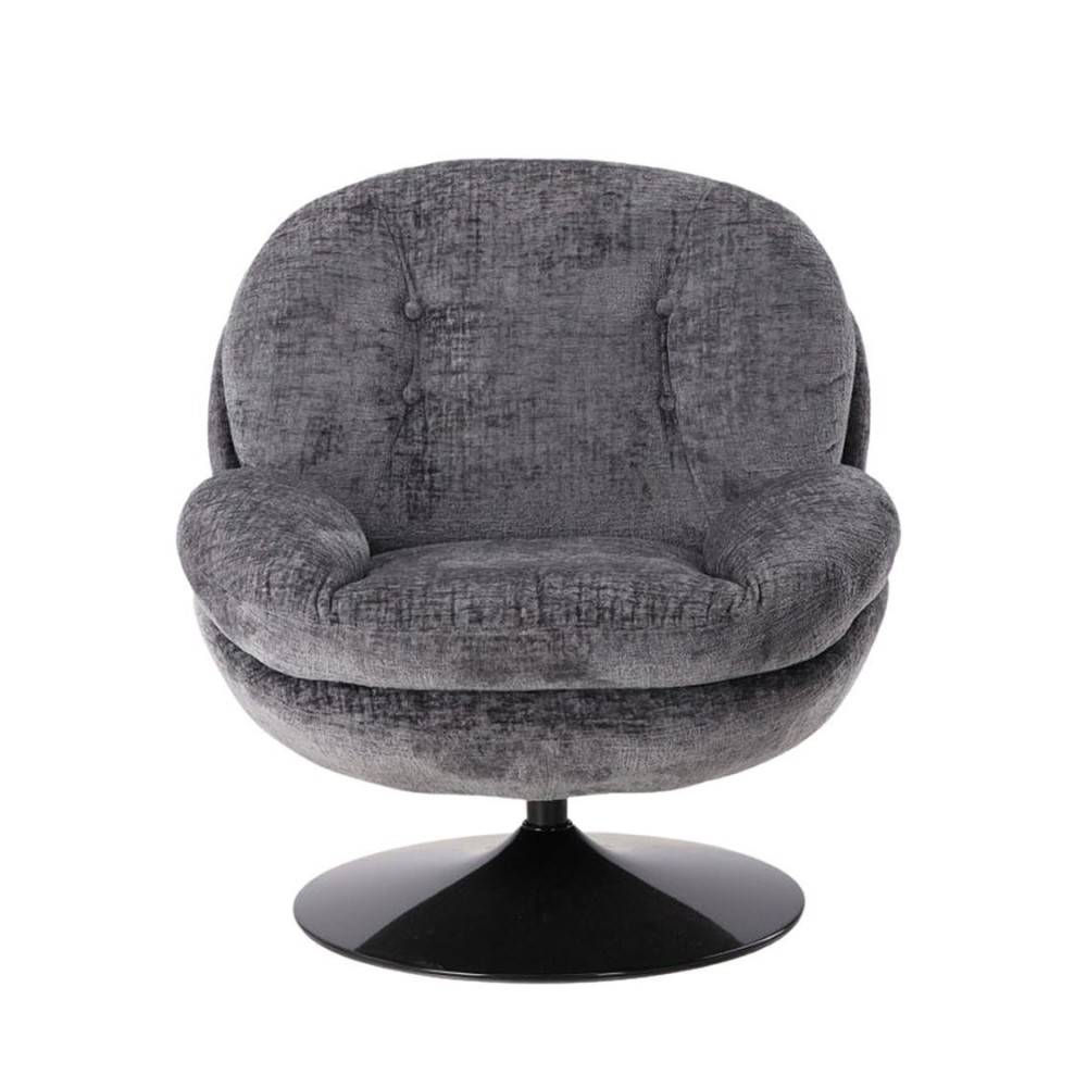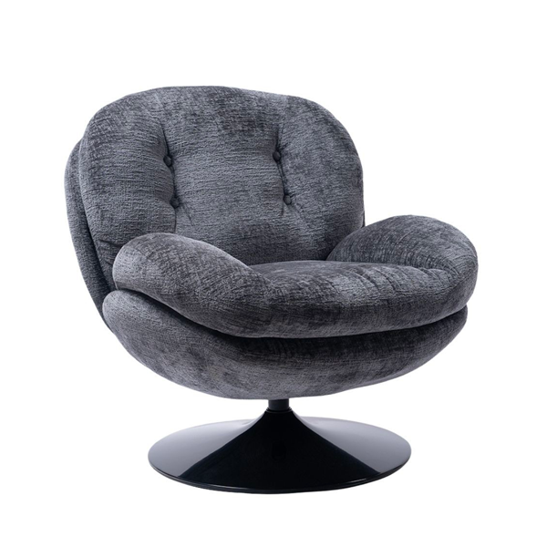 Faites écho au contraste du fauteuil lui-même (tissu doux / pied en métal). Mariez sa texture moelleuse à des éléments plus "durs" et raffinés dans le reste de la pièce. Pensez à une table basse avec un plateau en marbre, des objets décoratifs en laiton ou en verre fumé, et des touches de métal noir sur les luminaires ou les cadres pour rappeler son piètement. Ce mélange crée un équilibre visuel très chic. - L'écho des formes : répétez les courbes