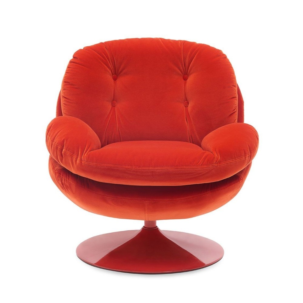 C’est une bouche pulpeuse qui va vous dévorer. C’est un saut dans le temps qui va vous téléporter dans l’insouciance des années 70. C’est surtout le plus beau cadeau que vous puissiez faire à votre délicat fessier. Loin d’être « seulement beau », le fauteuil pivotant Memento est d’un confort sans égal. Un coup de talon à droite, un coup de talon à gauche, vous changez de perspective. Oubliez la télé, ça y est, vous ne voyez plus que le ciel. Enfin.