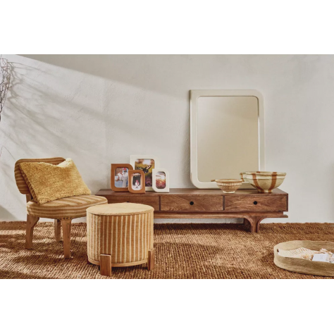 Matière de base : bois d'acacia Matière secondaire : jute Dimensions : L 57,5x62,5 xH70 cm