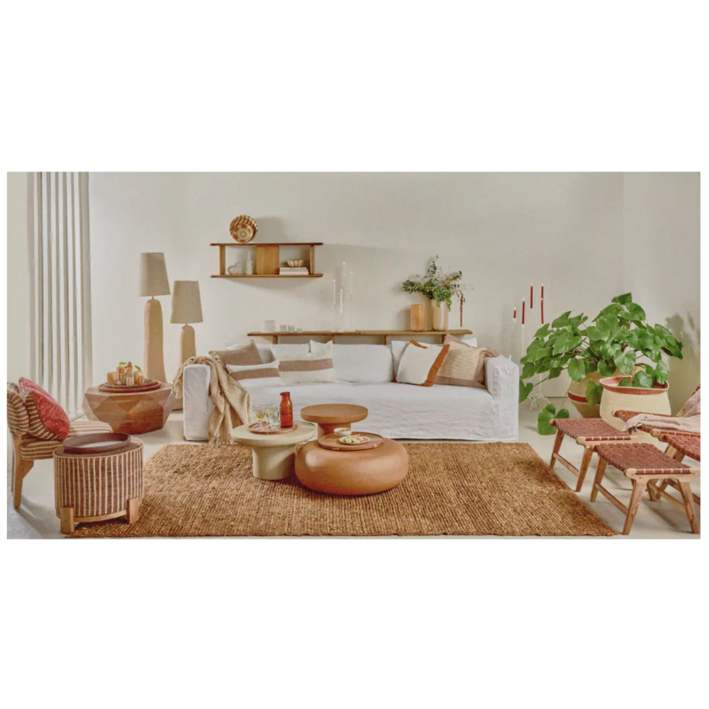 Matière de base : bois d'acacia Matière secondaire : jute Dimensions : L 57,5x62,5 xH70 cm