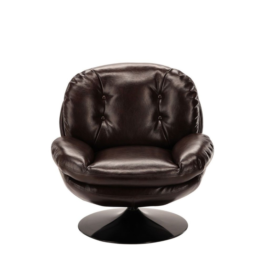 Faites écho au contraste du fauteuil lui-même (tissu doux / pied en métal). Mariez sa texture moelleuse à des éléments plus "durs" et raffinés dans le reste de la pièce. Pensez à une table basse avec un plateau en marbre, des objets décoratifs en laiton ou en verre fumé, et des touches de métal noir sur les luminaires ou les cadres pour rappeler son piètement. Ce mélange crée un équilibre visuel très chic. - L'écho des formes : répétez les courbes