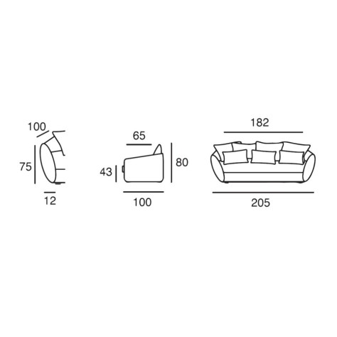 Largeur totale / assise : 205 / 162 cm