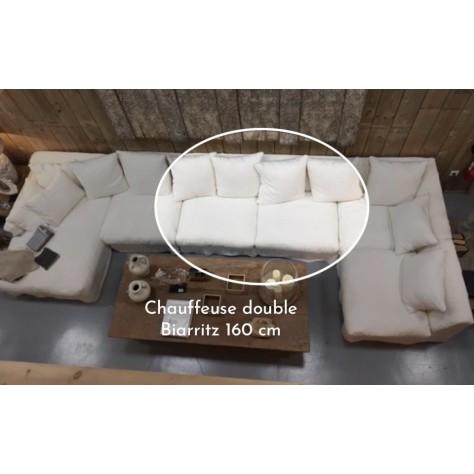 La gamme Biarritz en garnissage plume se compose de canapés 2,3 ou 4 places mais aussi d'un pouf, petit fauteuil ou fauteuil XL. Vous avez envie de faire différemment ? C'est possible ! Biarritz, c'est aussi une gamme de modules vous permettant ainsi de nombreuses configurations. Ainsi, en complément d’un canapé droit, le fauteuil 1 place XL, le pouf XL ou la méridienne seront parfaits. Mais pourquoi ne pas de jouer sur les chauffeuses simples ou doubles ? Et si votre rêve est d'accueillir un canapé d'angle, Biarritz vous le permet aussi. Entre ces exemples, vous aurez une tonne de combinaisons possibles ! Contactez-nous si vous avez besoin d'aide dans la conception de vos canapés.