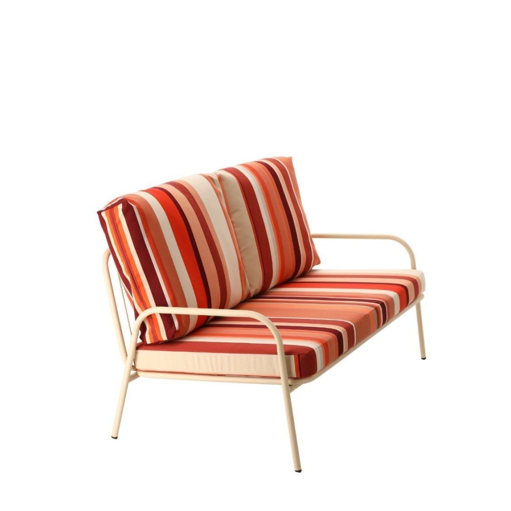 Matières : Structure fer, polypropylène et acrylique, coussins en mousse et enveloppes 100% polyester imperméables