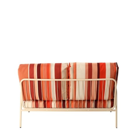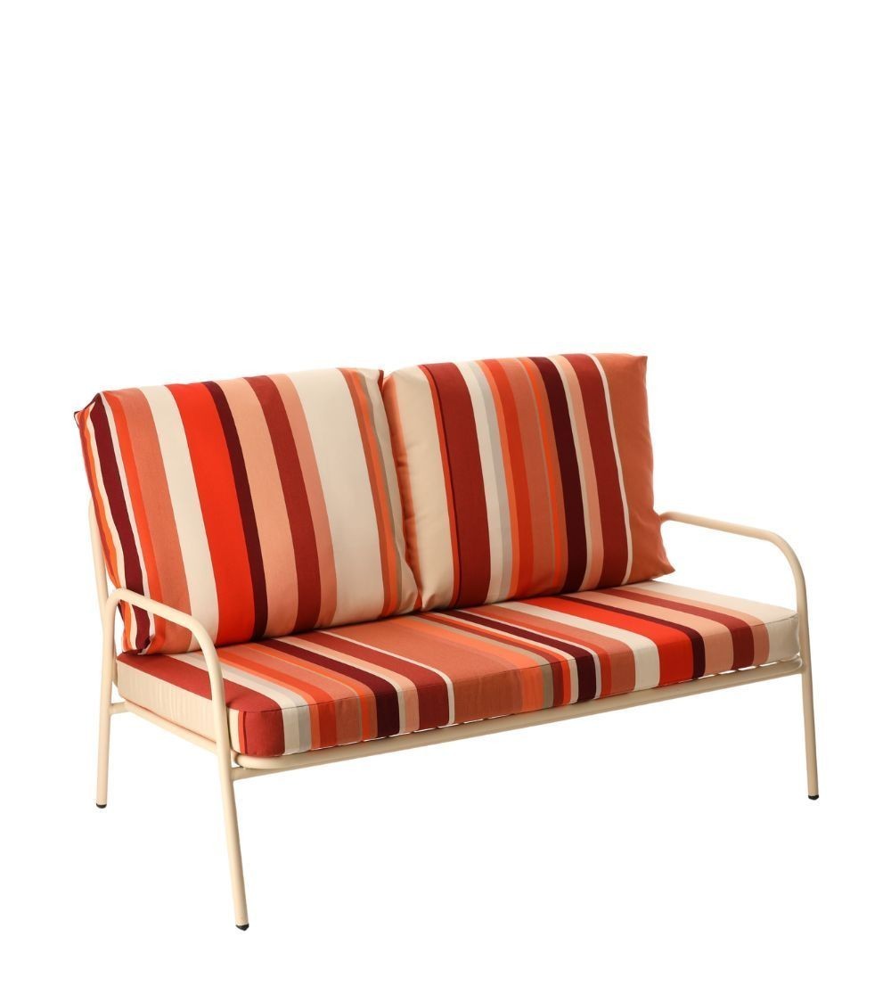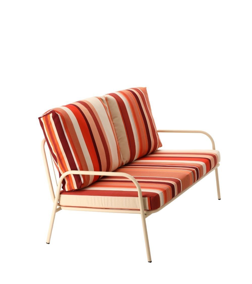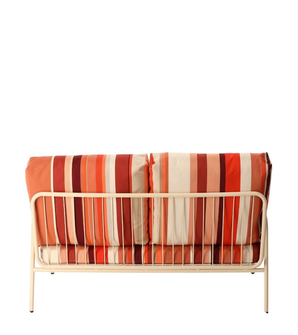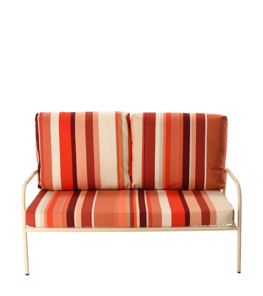 Sa structure en métal blanc écru est parée de coussins confortables habillés des toiles Cayrou, Auguste ou Uni Lin, témoignages d’un artisanat d’exception signé Les Toiles du Soleil. Aussi esthétique que fonctionnelle, cette banquette s’impose comme une pièce unique, parfaite pour transformer chaque instant en un souvenir mémorable, dedans comme dehors.