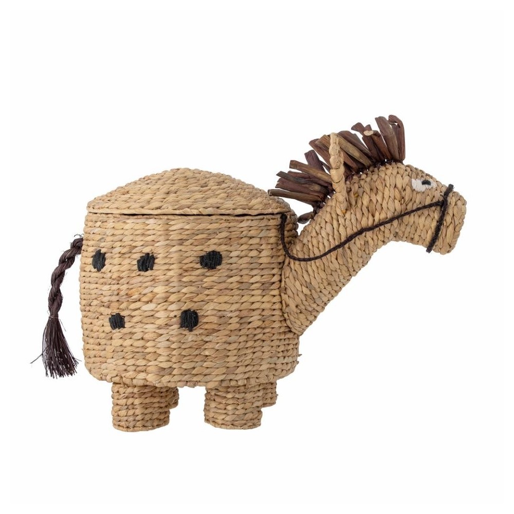 Nous on trouve qu'il ressemble à un chameau mais c'est un cheval. Pas sûr qu'il soit très rapide mais ce compagnon sera quand même le fidèle destrier de votre enfant. Vous y verrez la solution idéale pour ranger le bazar, il y verra la possibilité de vivre des grandes aventures. Panier ET jouet à la fois !