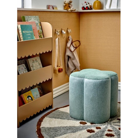 Tapis 100% coton tissé-teint, à rayures bleue et crème, pour chambre d'enfant. Moelleux et doux pour ses pieds, il permet la descente de lit, l'espace table et chaise mais également de délimiter un espace de jeux.