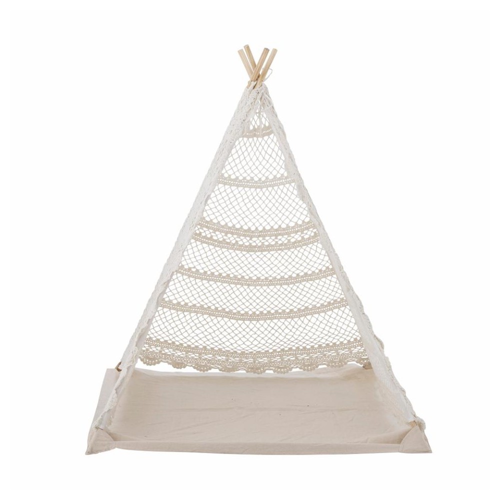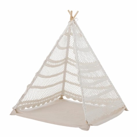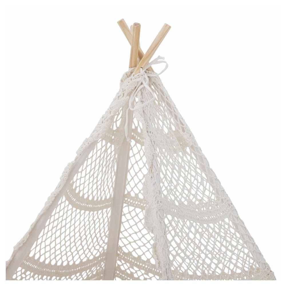 C'est parti pour d'innombrables heures de jeux avec cette tente tipi en coton recyclée, crochetée à la main. Parfaite pour la déco d'une chambre d'enfant, elle permettra accessoirement d'y ranger quelques peluches et coussins qui traineraient. Temps calmes, entre lecture et siestoune, temps forts, à imaginer et vivre mille et une histoires, cette tente sera la cabane préférée des enfants.