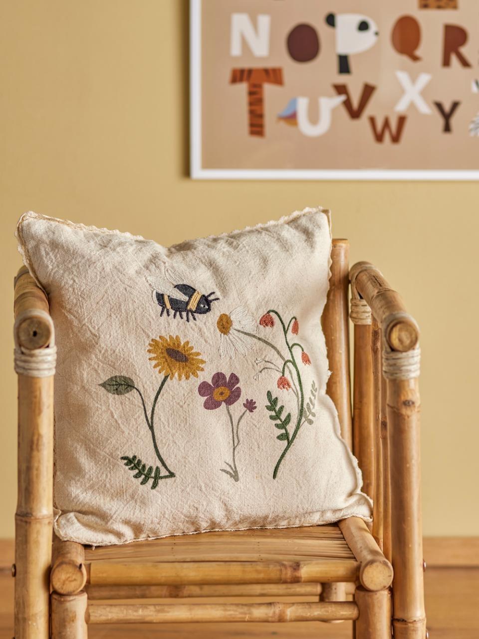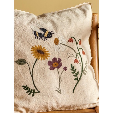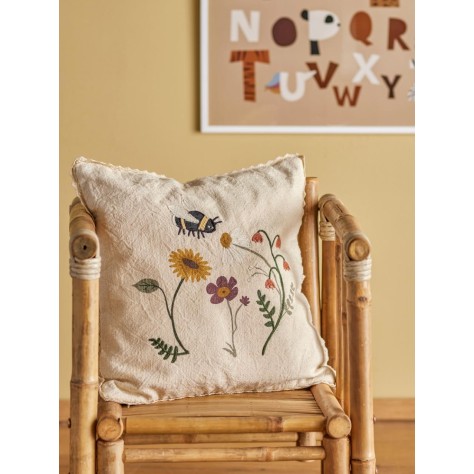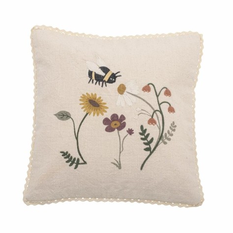 Coussins carrés brodés avec liseret de dentelle, au look rétro, pour des moments de détente. A poser au sol, sur son lit, sur un tapis ou dans sa tente tipi. Très déco, très chaleureux.