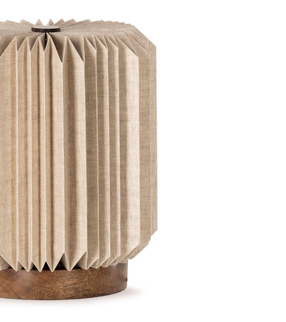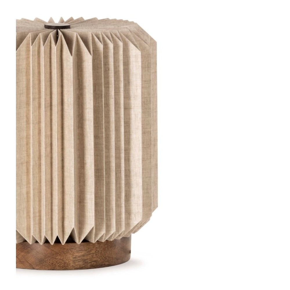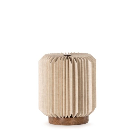 Cette très belle lampe inspirée du design japonais diffusera une élégante lumière douce et tamisée grâce à sa structure en lin. Son socle en bois se marie parfaitement avec son abat-jour écru. Cette lampe est réalisée de façon artisanale, chaque pièce est donc unique.