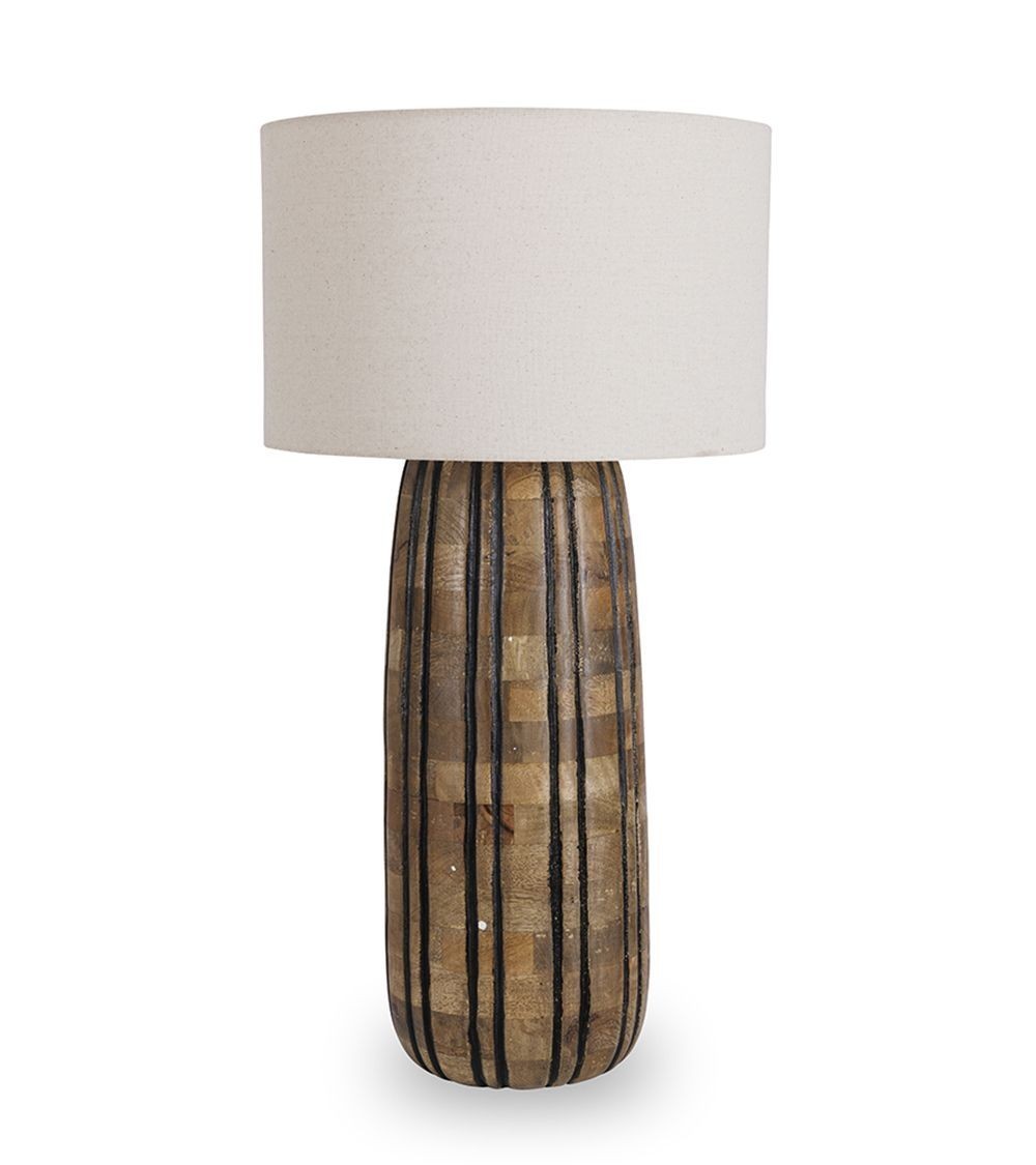 Matériaux : pied en manguier, abat-jour en coton