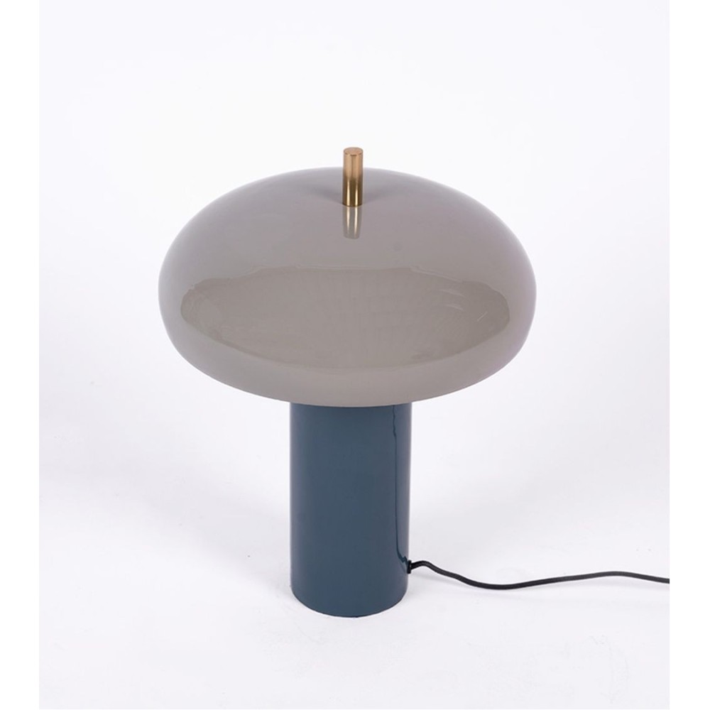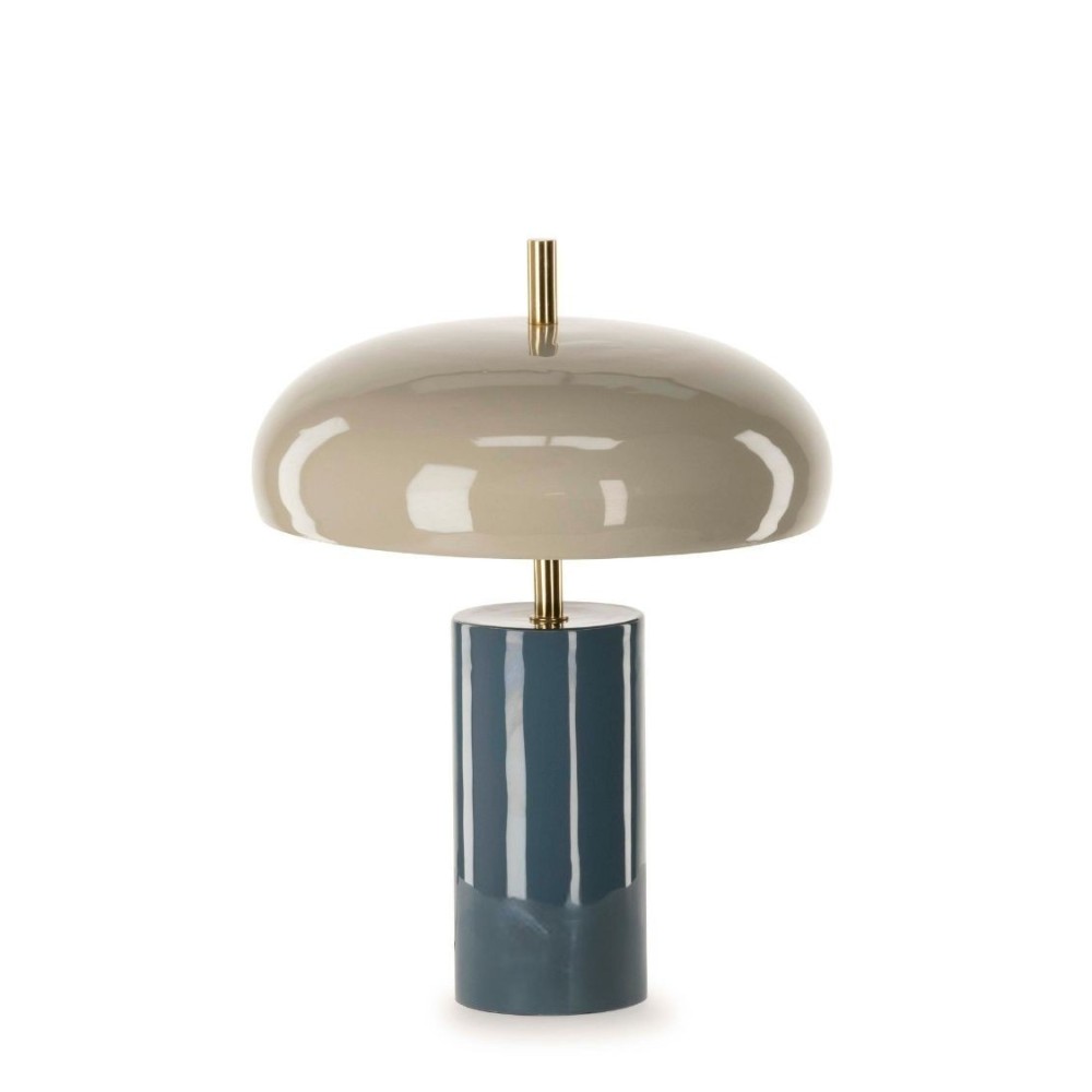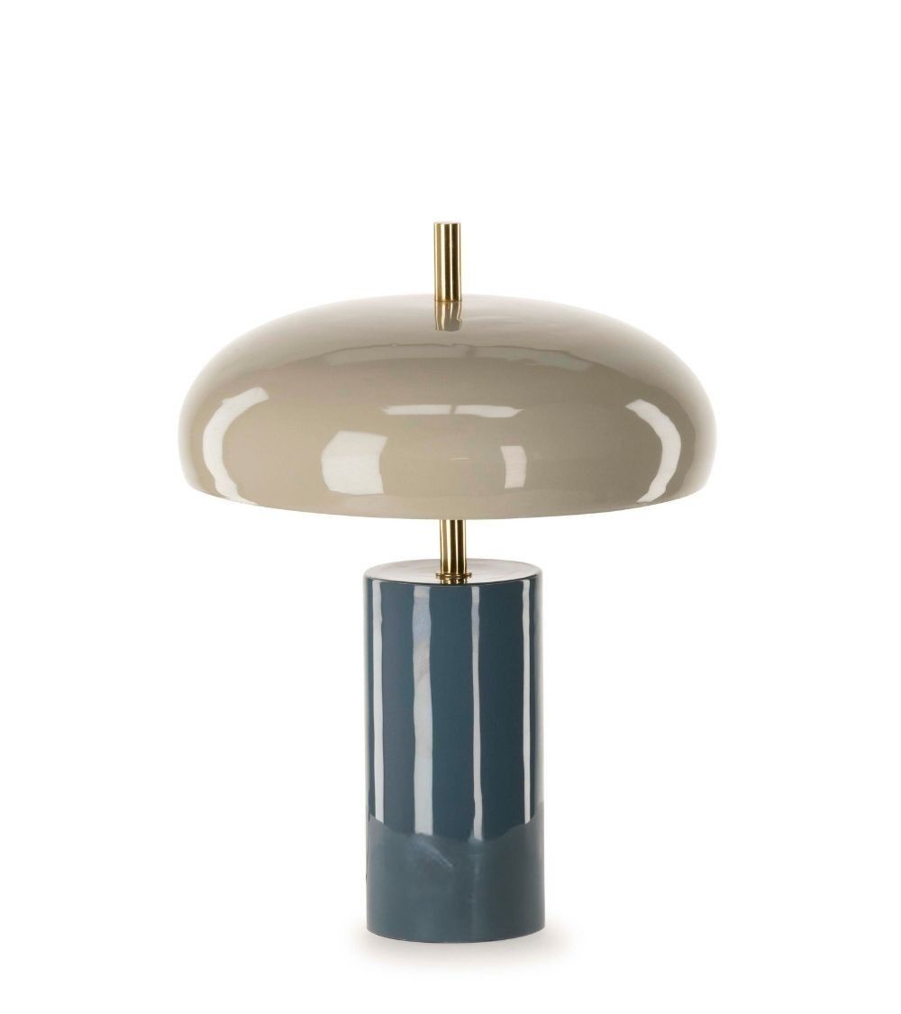 La base cylindrique et l'abat-jour en dôme affichent un duo de teintes contrastées, apportant un esprit graphique et vitaminé à votre intérieur. Rehaussée d'une fine structure en métal doré, elle diffuse une lumière douce et stylée, parfaite sur une commode, un bureau ou une table de chevet pour une touche résolument rétro.