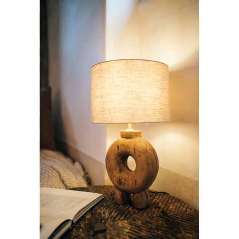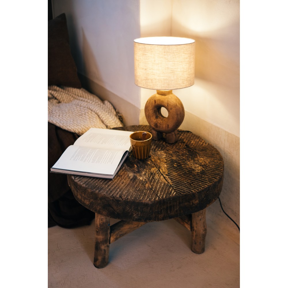 Matières : pied en bois de mangier, abat-jour en lin