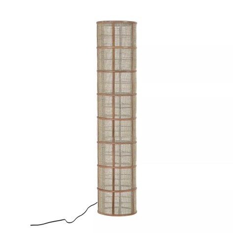 Créez une atmosphère douce et sereine avec cette lampe de sol cylindrique. Sa structure graphique est façonnée en bambou et délicatement recouverte d'une authentique toile de lin. Cette combinaison de matières naturelles permet de diffuser une lumière chaude et tamisée, idéale pour une ambiance intime et apaisante dans un salon ou une chambre.