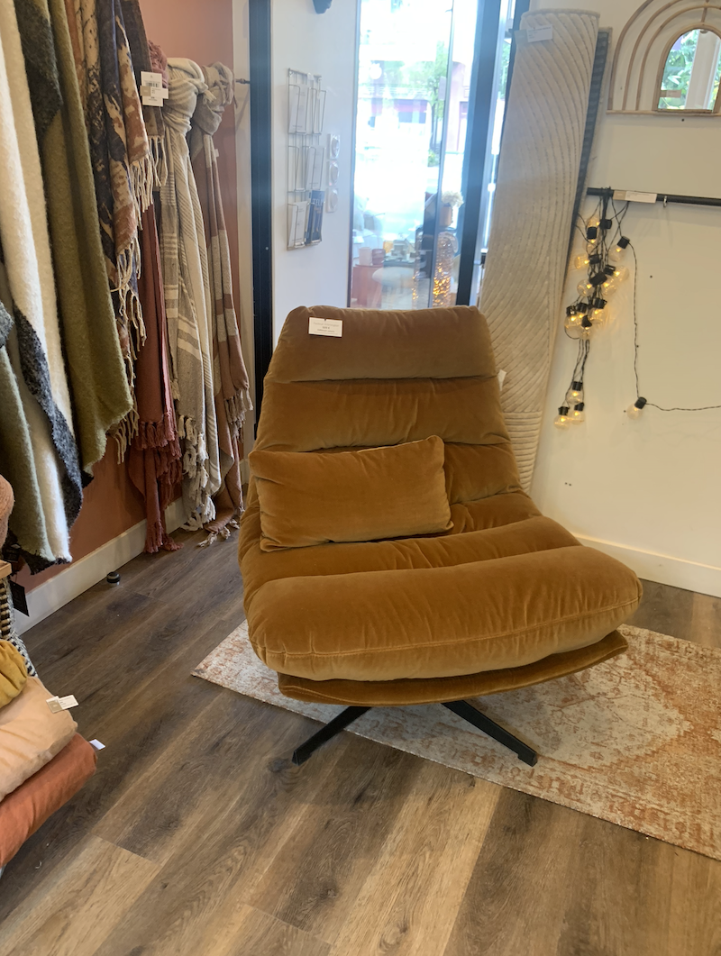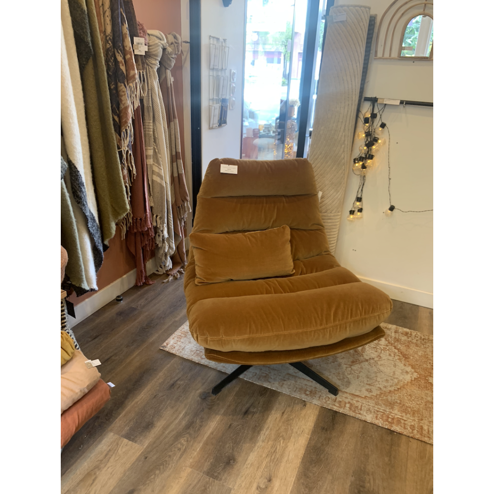 Fauteuil pivotant velours, coloris camel, dimensions : 82 x 84 x H94 cm