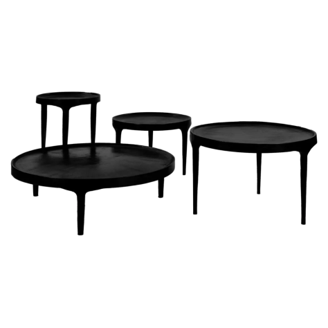 Vous aimez les tables d'appoint d'aspect naturel et organique, mais avez-vous peur que le bois soit trop sensible? Alors la collection de tables d'appoint Trip est faite pour vous ! Les trois tables en aluminium noir mat de différentes hauteurs et largeurs peuvent être placées à part ou ensemble comme une seule grande unité pour un effet maximum. En plus de cette petite table d'appoint d'un diamètre de 80 cm, il y en a aussi une de 40 cm et une de 60 cm.