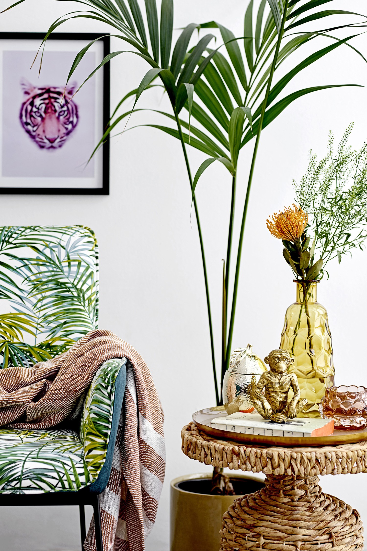 La table d’appoint Camo de Bloomingville peaufine le look naturel de votre maison tout en ajoutant une note chaleureuse. Posée avec une lampe et un bouquet de fleurs, elle insufflera de la vie à votre maison. Vous pouvez aussi la placer à côté de votre canapé pour y poser votre tasse à café et votre magazine. La base tressée de la table est robuste et d’une stabilité à toute épreuve.